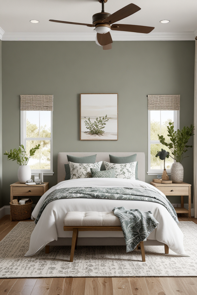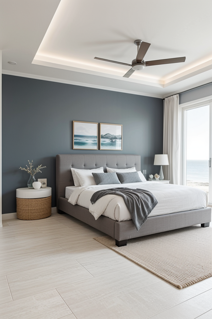 To achieve synchrony with the colors of the ocean, it is necessary to combine the deep and light blues, greens, and sandy neutral tones that inspire tranquility within a coastal ambiance in your bedroom. This collection of colors works together to create a soothing environment that boosts both nautical and modern design. Each hue is carefully selected to reflect the natural beauty of the ocean to create a balanced and inviting soothing space.