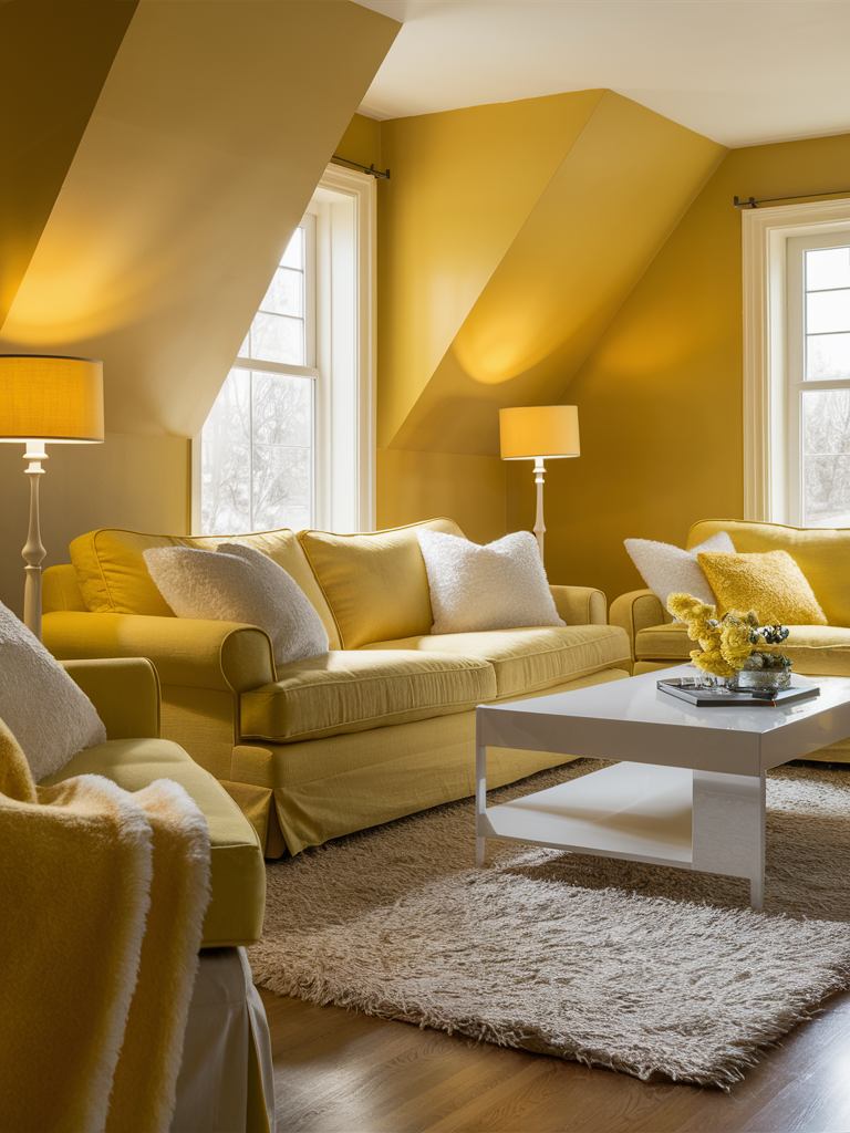 A yellow living room is exuding the spirit of hospitality and the scent of a new day. Yellow is a joyful color that can make any space bright and inviting. The yellow should be applied on the walls, cushions, or traits to give the room an uplifting feeling of airiness. The shade has perfect compatibility with the solar beam and may be contrasted with white or light gray to keep the look appealing.