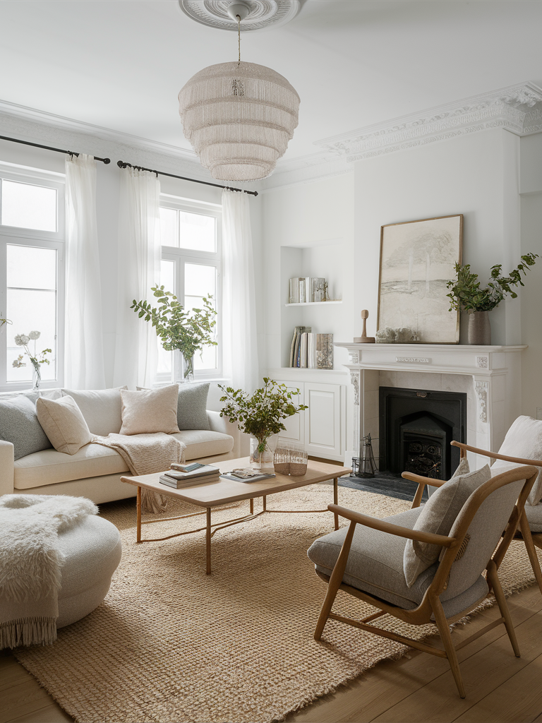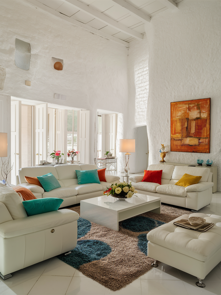 A white living room gives a feel of the cleanliness and order of a modern and calm space that is both timeless and up-to-date. With no-doors and white-finished furniture in the room, people are able to breathe better and feel more comfortable as light and air circulate, and the room becomes visually bigger. This is a wiped slate that comes with infinite opportunities for choosing any color you want to have the decorations and the parters to the colors and add the accents. Inserts with bright colors on cushions, rugs, or pictures can be the good contrast that can bring energy to the space.