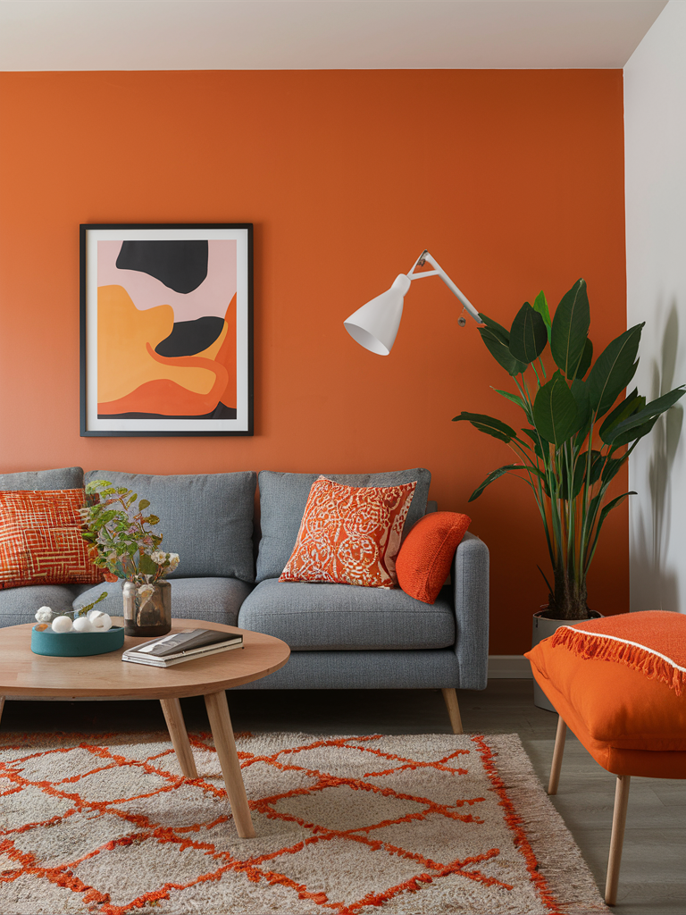 The orange living room namely opens up and involves you effectually. Orange is a warm and friendly color that can hide a quirky and playful touch in your living space. Orange should be used only in a small amount, for example, on a wall as an accent color, on a cushion cover, or a rug. In addition, this color arrangement surprisingly does not dominate the entire room.