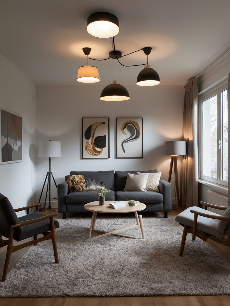 Optimal use of mixed lighting will not only add to the ambience but also make the living room more functional. Spot or accent lighting is used for emphasizing on specific artwork or other elements of design. Thus, it provides general lighting, which as the name suggests, gives overall illumination to a room, in other words, it is used for general everyday activities. Task lighting, on the other hand, is quite self-explanatory. Where ambient lighting lights up the whole area, task lighting, like the name suggested, targets the specific area, like a desk or reading nook. The perfect triad of ceiling lights, floor lamps, and table lamps will make the room well-lit and multifunctional.
