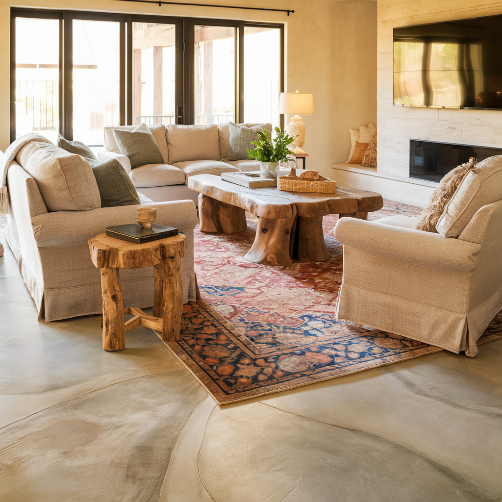 Cement floors are a living room user’s fantastic option when it comes to making up different design concepts as a canvas. Their adaptability means that they can be found in concert with many types of furniture, modern or traditional. To design a living room with concrete floors, you can think of strong contrasts, so be sure to choose other textures like area rugs in soft materials and low seating to add those plush surfaces to the checklist.