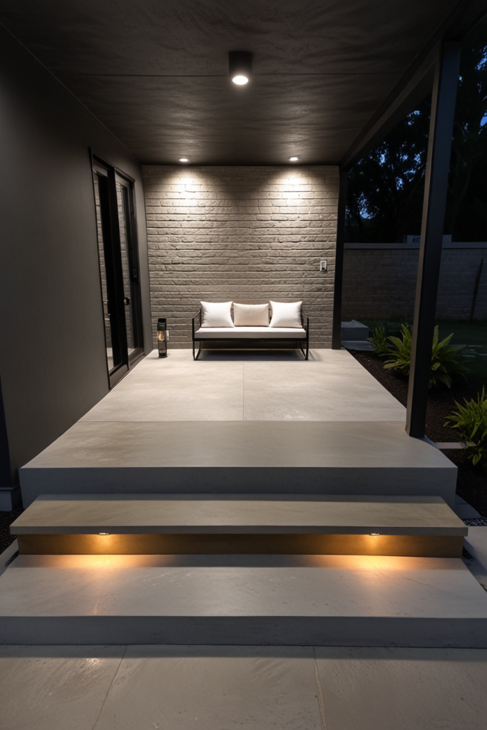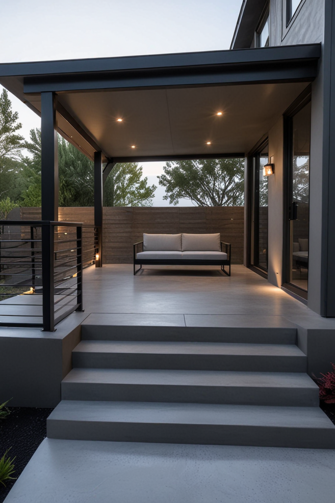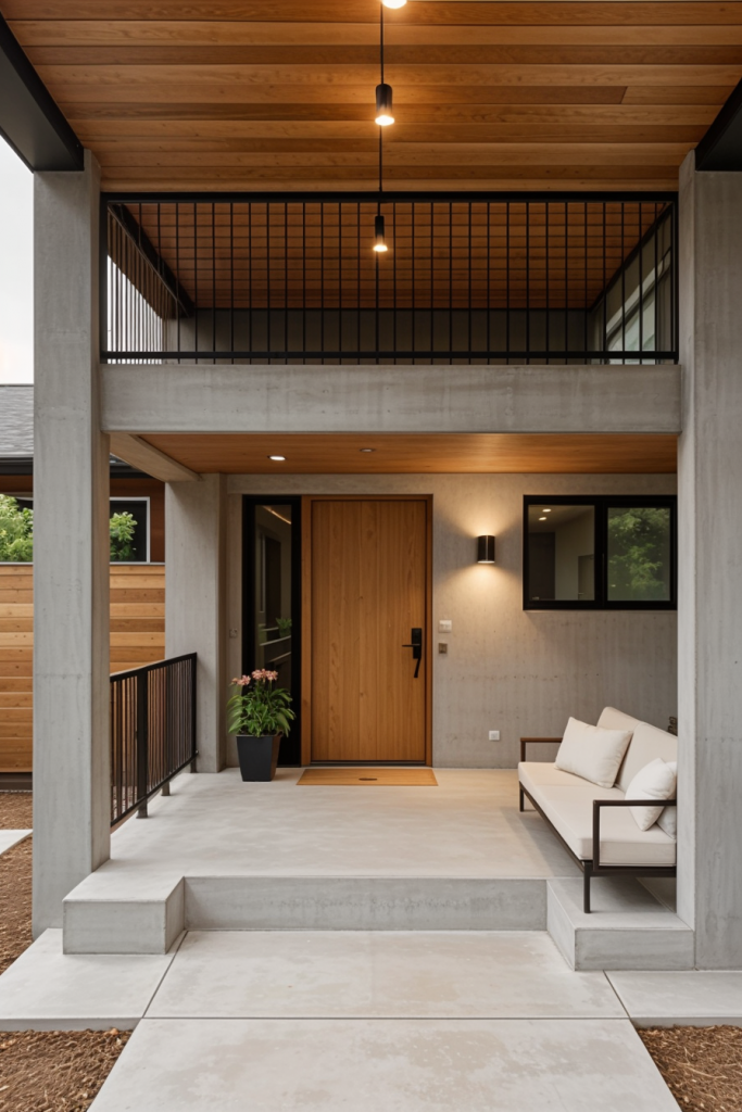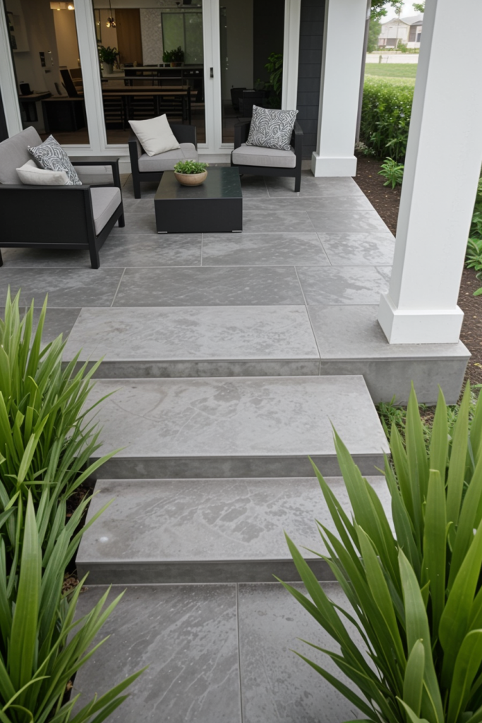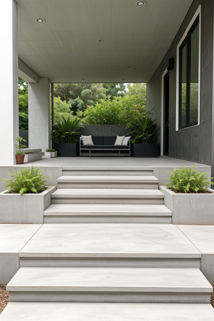 Multi-Tonal Concrete Porch with Contrasting Finishes