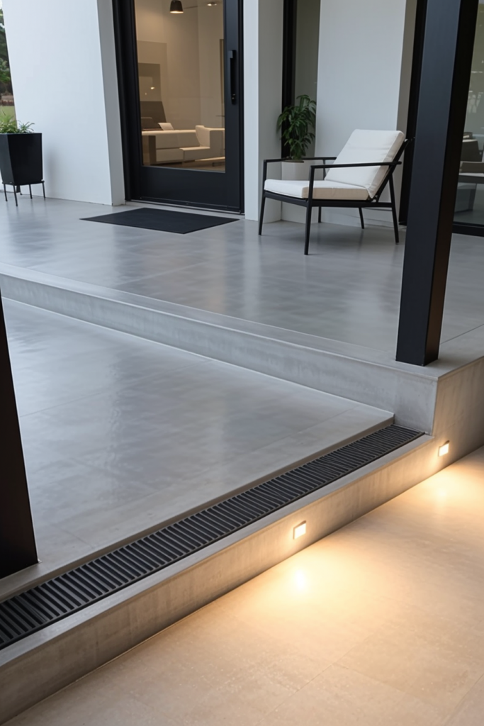 Concrete Porch with Hidden Strip Drainage for a Clean Finish
