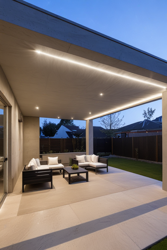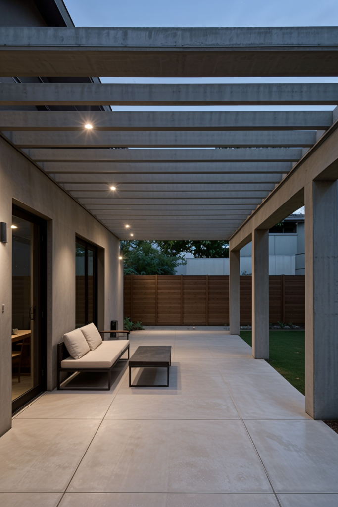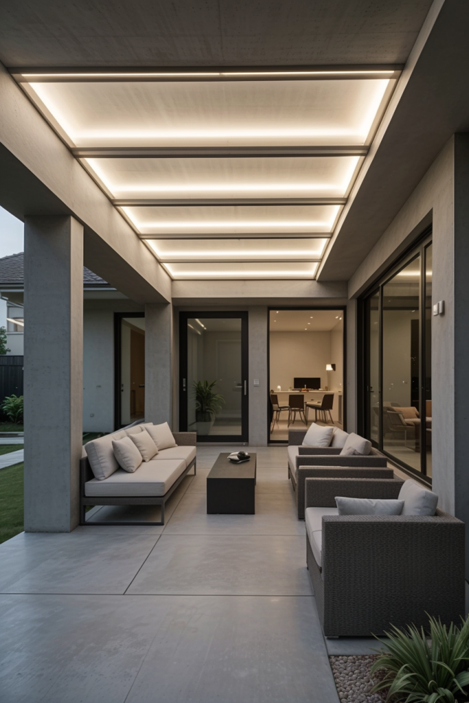 Open-Air Concrete Porch with Ceiling-Mounted Heaters