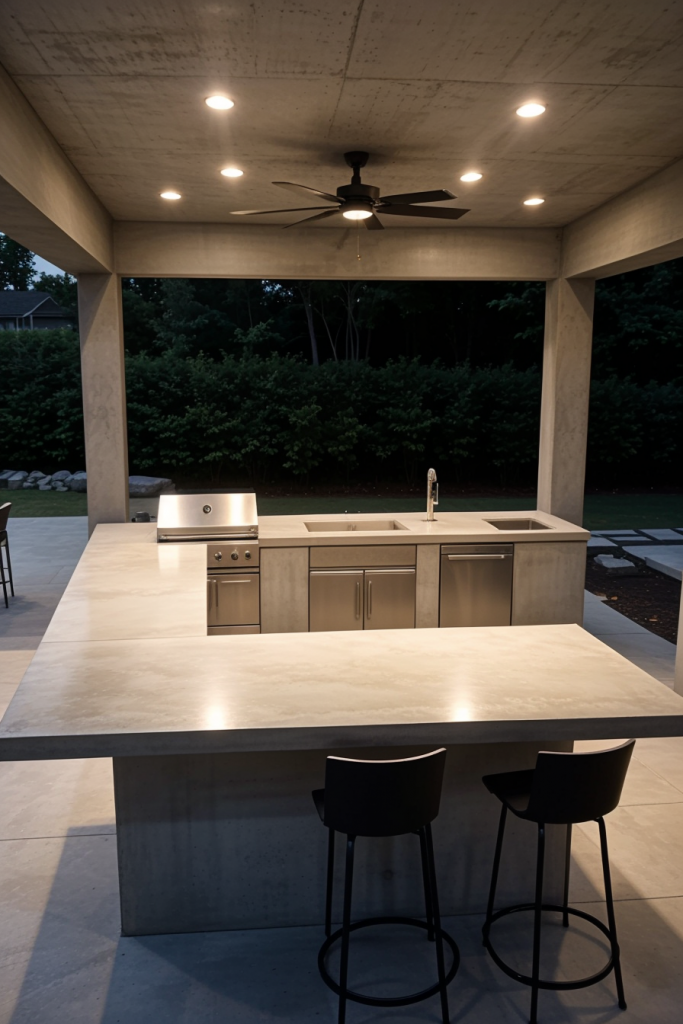 Concrete Porch with a Built-In Outdoor Kitchen or Bar