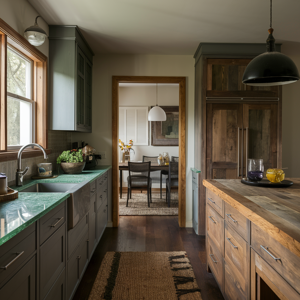 Reclaimed wood countertops add something new and different in the kitchen with their natural, rugged look. Being produced from re-purposed wood, these countertops are rich in texture and imperfections that add natural touch to it. Connecting it with the respective cabinet and rural decor, the design appears to be eco-friendly and visually very attractive. This style will be a hit with care for the environment and uniqueness, instead of the glossy looks popular today.