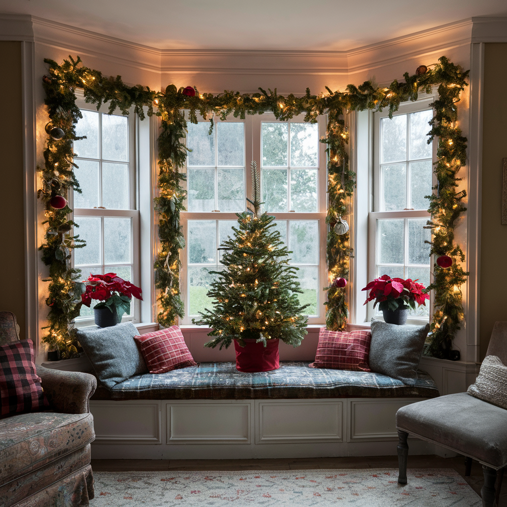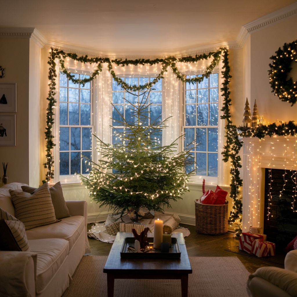 Bay Window Decorations for a Cozy Christmas Living Room