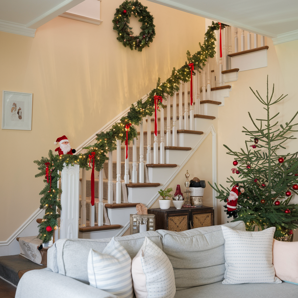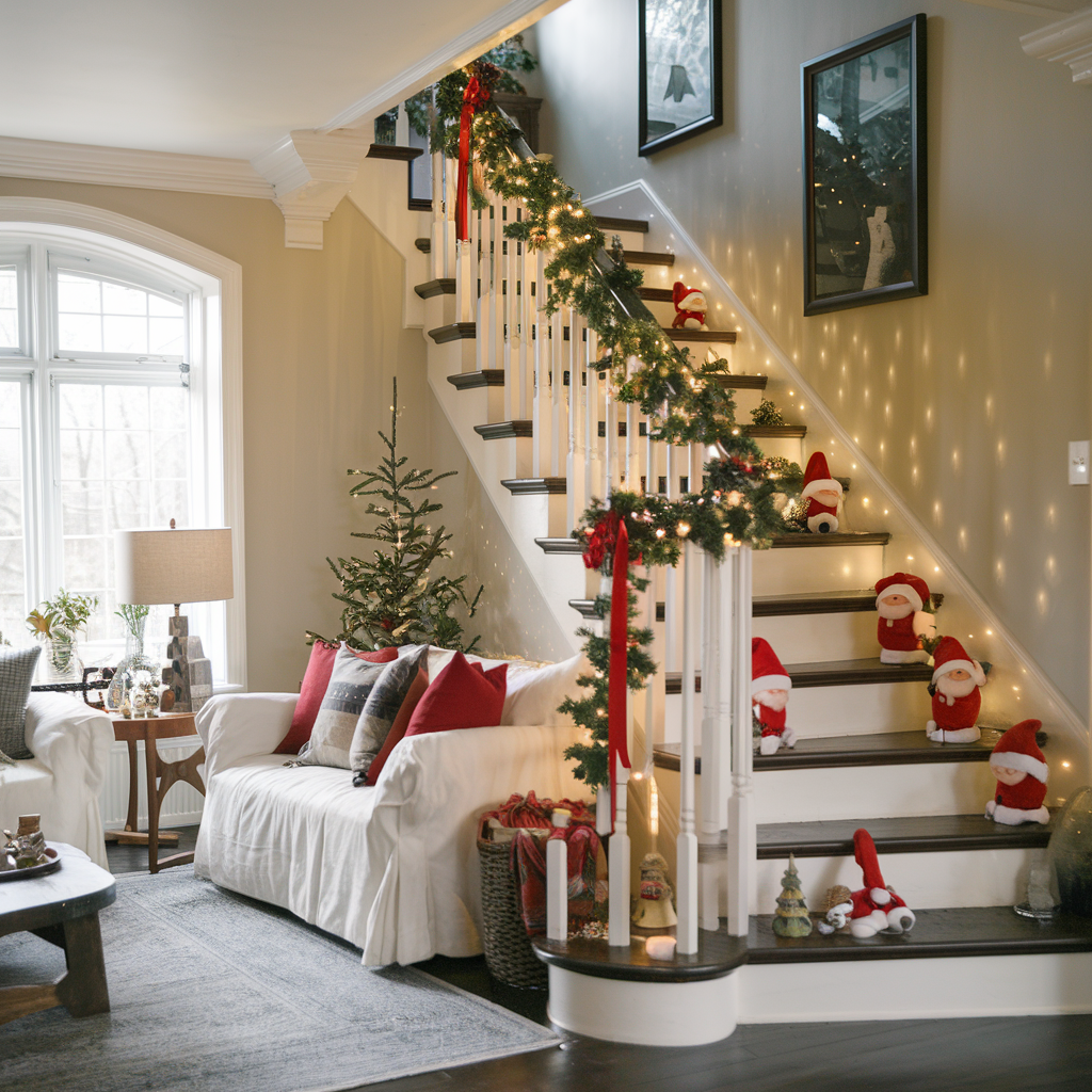Christmas Design of Stairs to the Second Floor in the Living Room