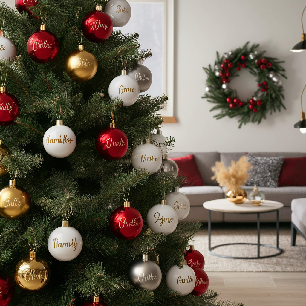 Living Room Decoration from a Series of Balls with the Names of Family Members