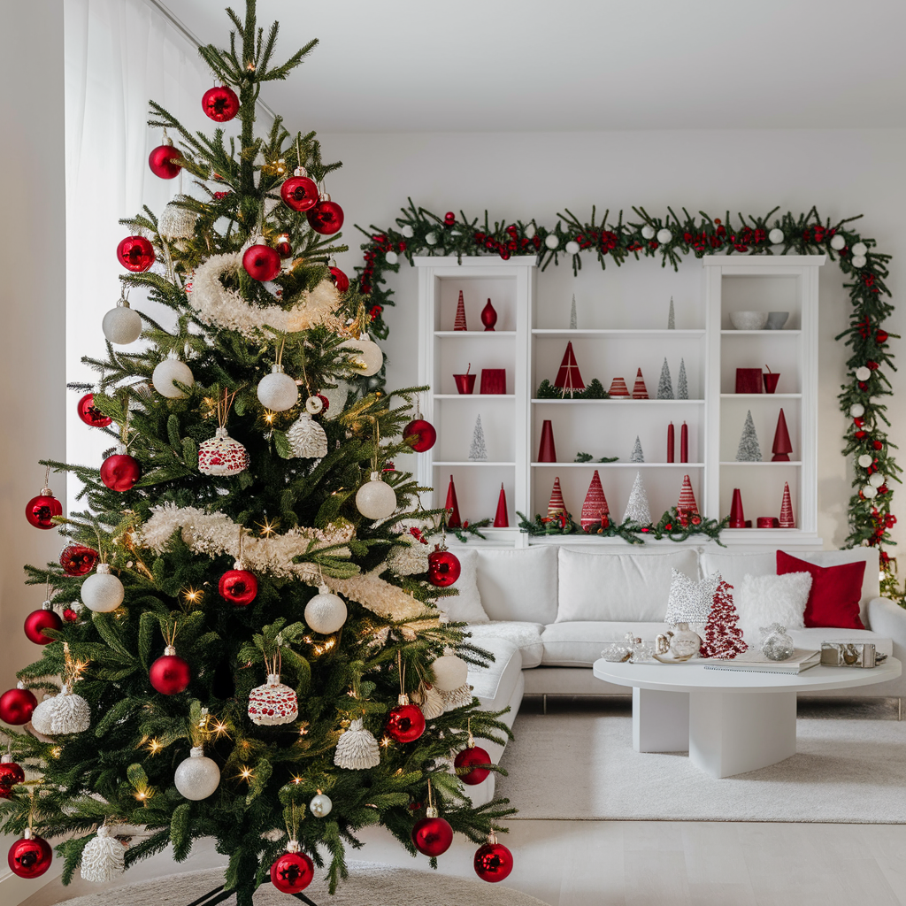 The Christmas tree is definitely the main attraction of any occasion living room. Picking the correct tree, whether artificial or natural, will initially and finally set the mood for the room. Adorn your tree with modern ornaments such as glass ornaments, fairy lights, and a star at the top. Adding some simple elements like a tree skirt or red and gold ribbons will just be enough to make it look cozy without overwhelming it. For the small area or also in the case of the apartment, try the slender tree that complements the space rather than the one which dominating the space.