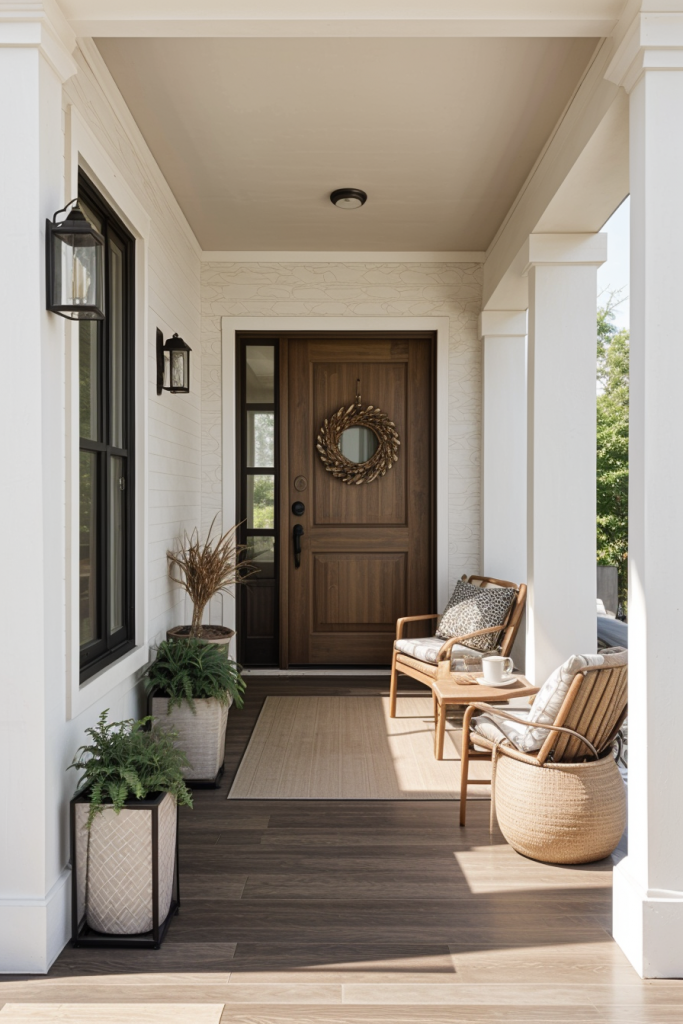 Picture an outdoor space that’s simply more than stunning. that would be a porch which combines a nicely arranged, flowered, pot filled space with curved interior design. This article examines a variety of clever porch ideas, from unique decor styles to simple rustic accents and even modern minimalism. It doesn’t matter if you’re imagining classy steps that greet guests as they approach the house or a beautiful space enhanced with designer columns, we have great ideas to help you turn your porch into a stunning masterpiece.