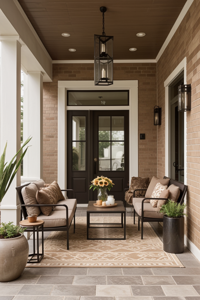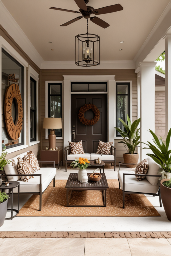 Stunningly chocolate themed elegant decors infuse your porch with a rich and warm elegance. The style uses deep earthy hues to make the place sophisticated yet comfortable. To create visual depth use chocolate decor elements to anchor the design, and balance them with lighter accents.