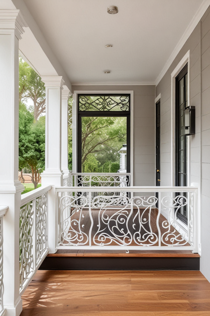 Railing and balustrades on your porch can be stylish and safe at the same time. They add more value as decorative points that beautify the overall appearance. These elements can have intricate detailing or modern, simplistic styling that is in line with the structure and enhances the architectural beauty of the space. Creativity and functionality should go hand in hand together. Ensure harmony with the other design features.