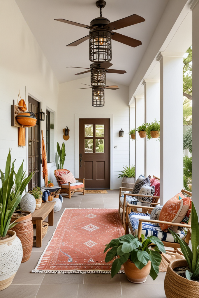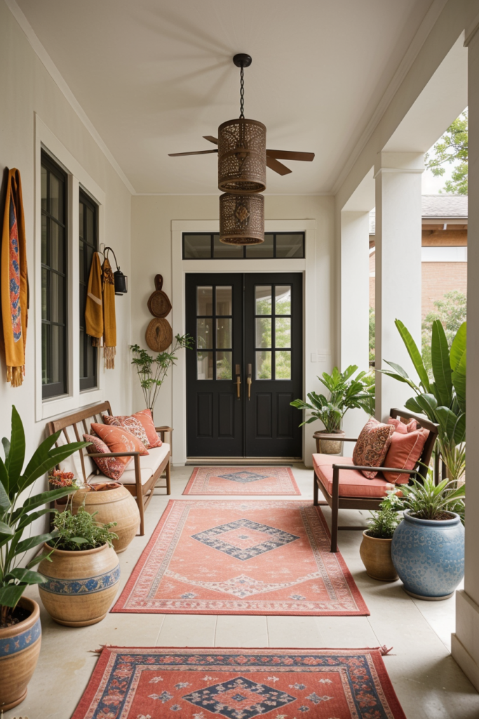 Different cultures from all over the world serve as inspirations for global porch designs with different artistic styles fused with old and modern patterns. The incorporation of handcrafted decorations, colorful fabrics, and local features celebrates multicultural impacts. Blend modern touches with eclectic global influences to create a beautiful space.