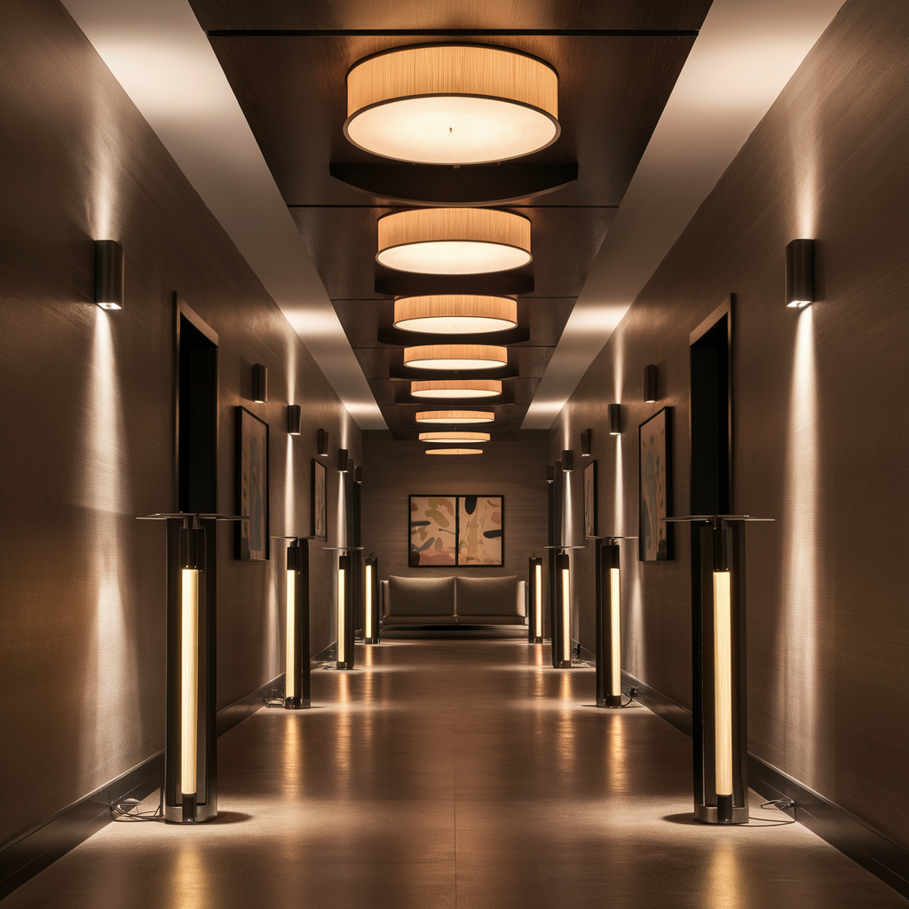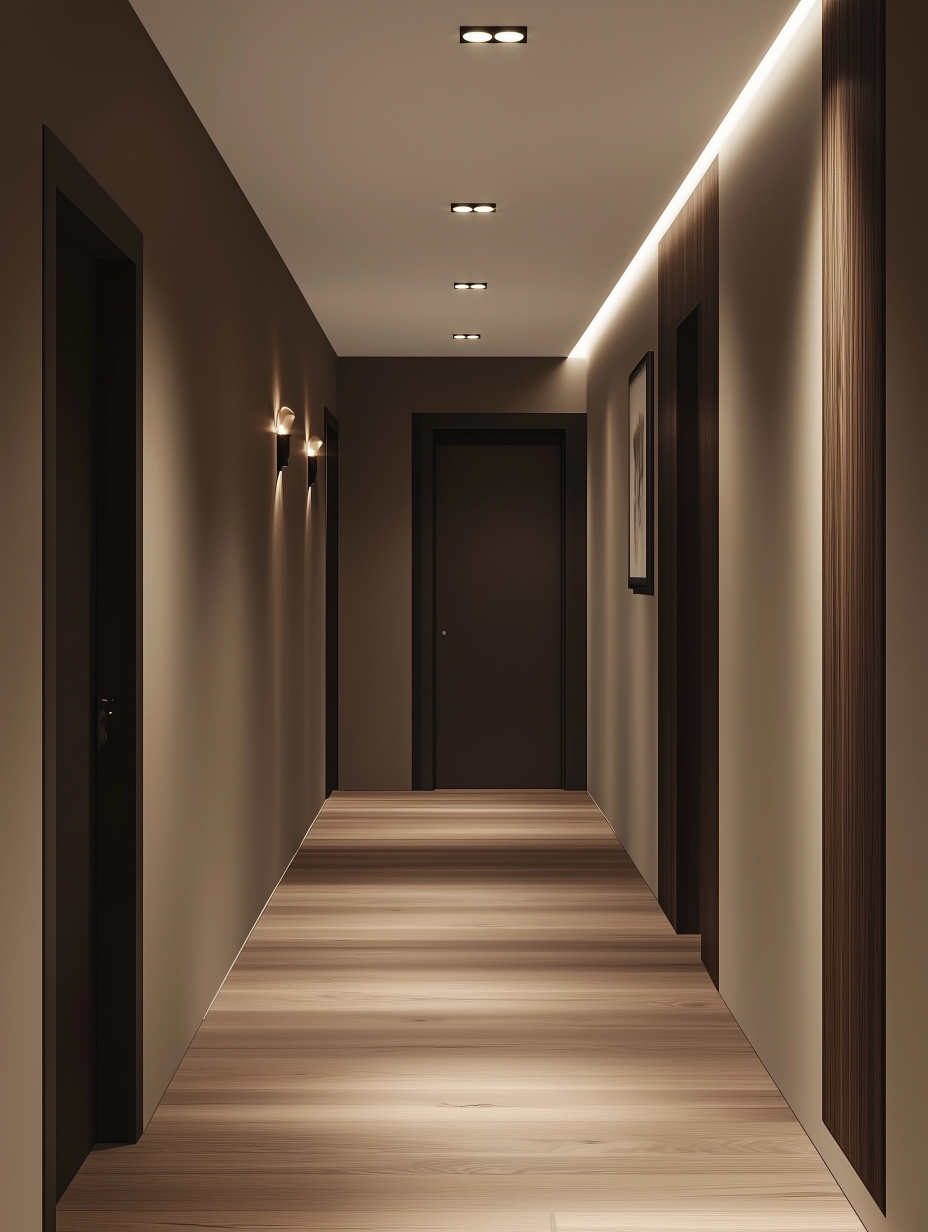 Maximizing brightness in dark hallways through lighting involves a combination of overhead lights, wall sconces, and floor lamps. Use LED lights for their brightness and energy efficiency. Position lights to eliminate shadows and highlight key areas, ensuring an even distribution of light throughout the hallway.