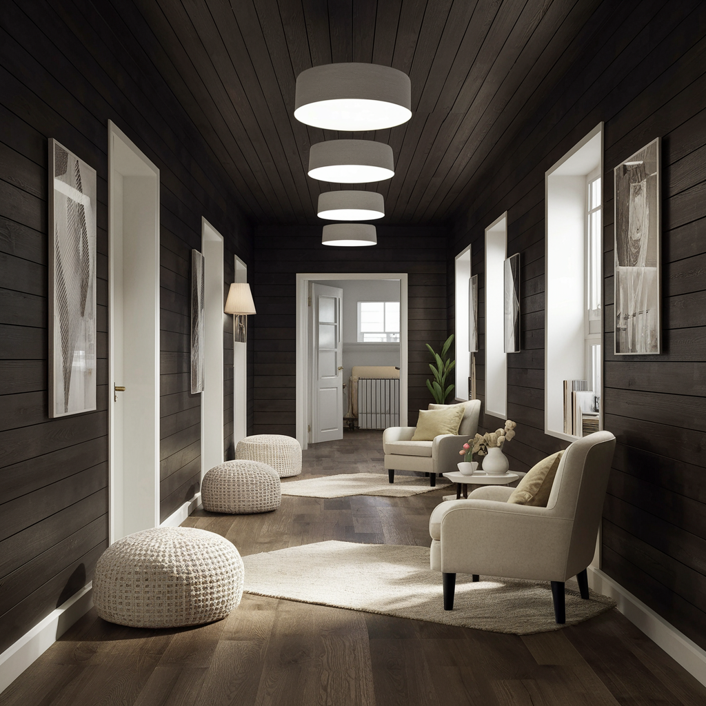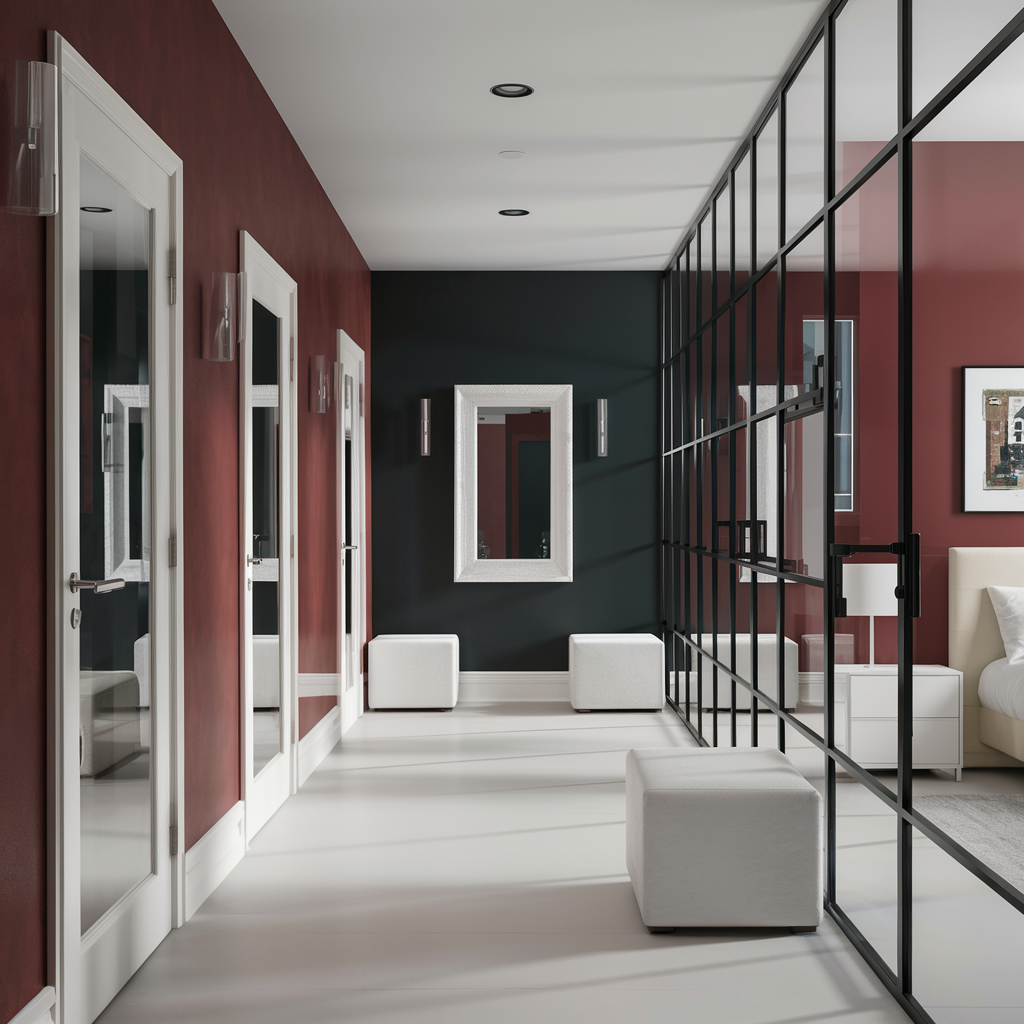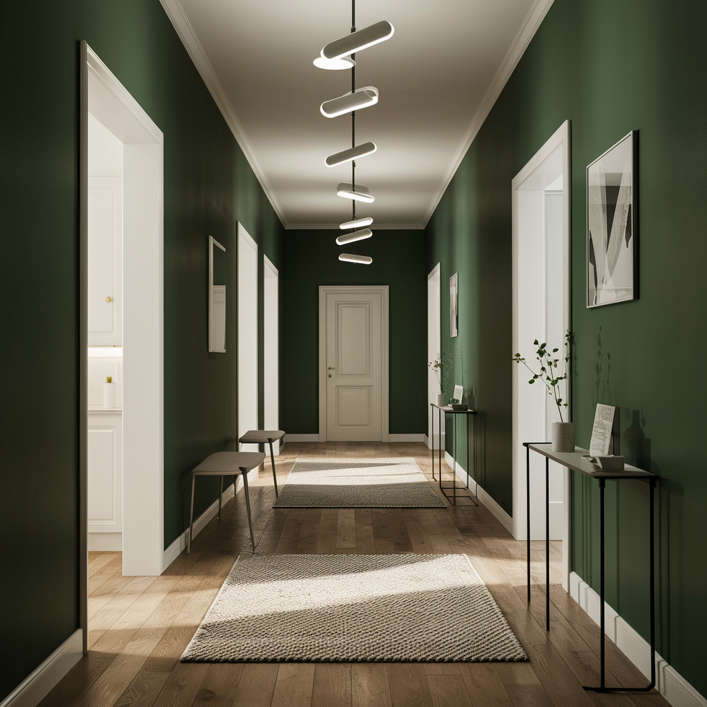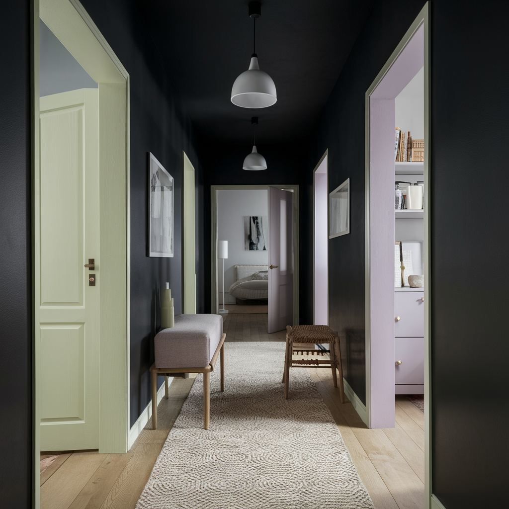The right choice of paint colors multitasks from restoring a monotonous and gloomy to a bright and engaging space. Light, neutral colors such as whites, light grays, and soft pastels are excellent choices to reflect light and make the space feel larger and more inviting. For example, right wall colors like light to brighten up the hallway and also it is recommended to use the two-pane finish of gloss substrate for the walls or semi-gloss to be more enhanced and reflective.
