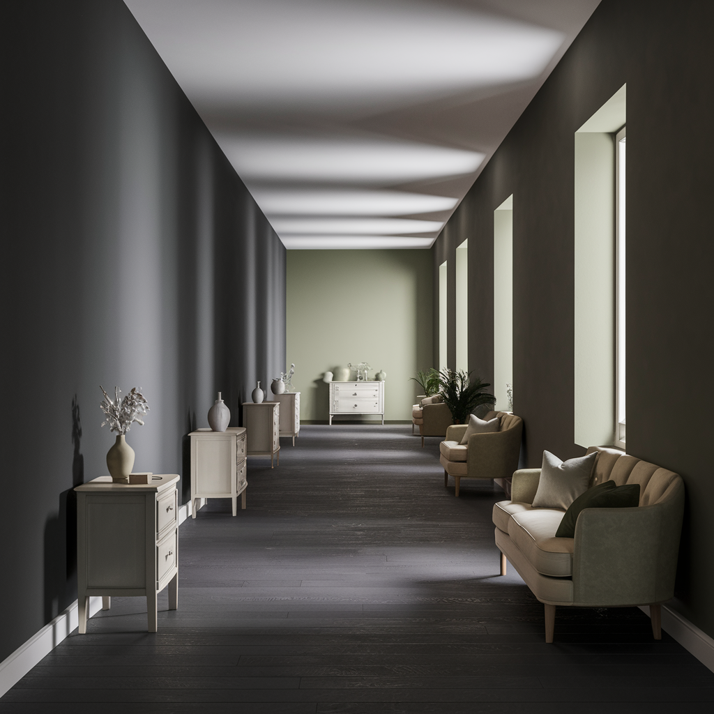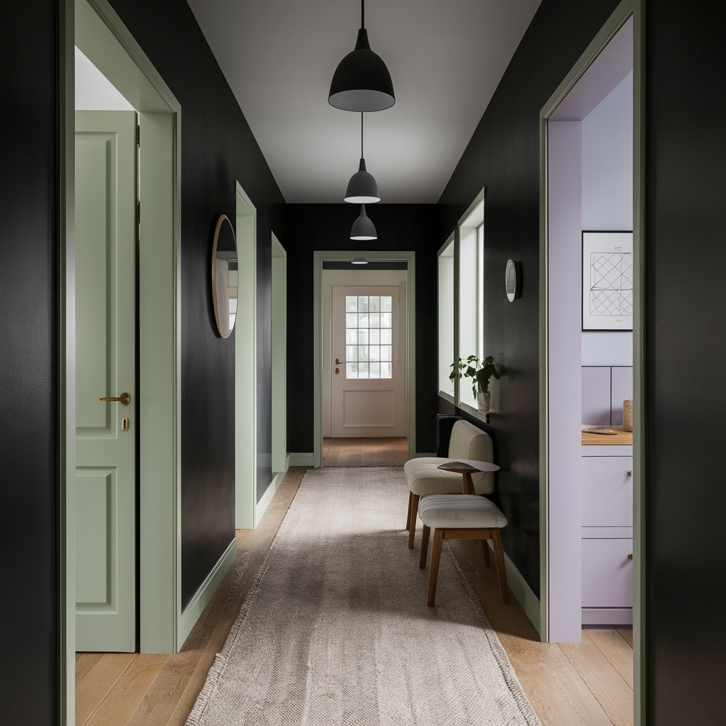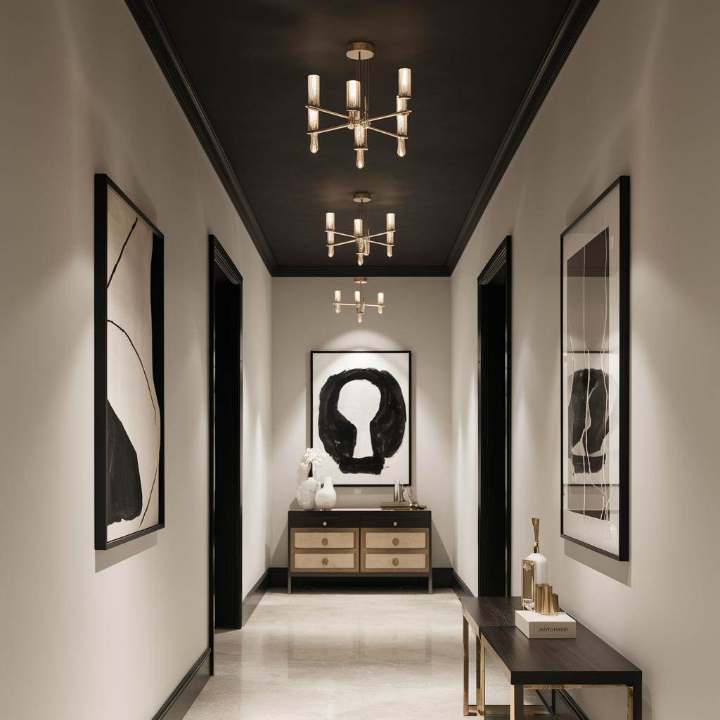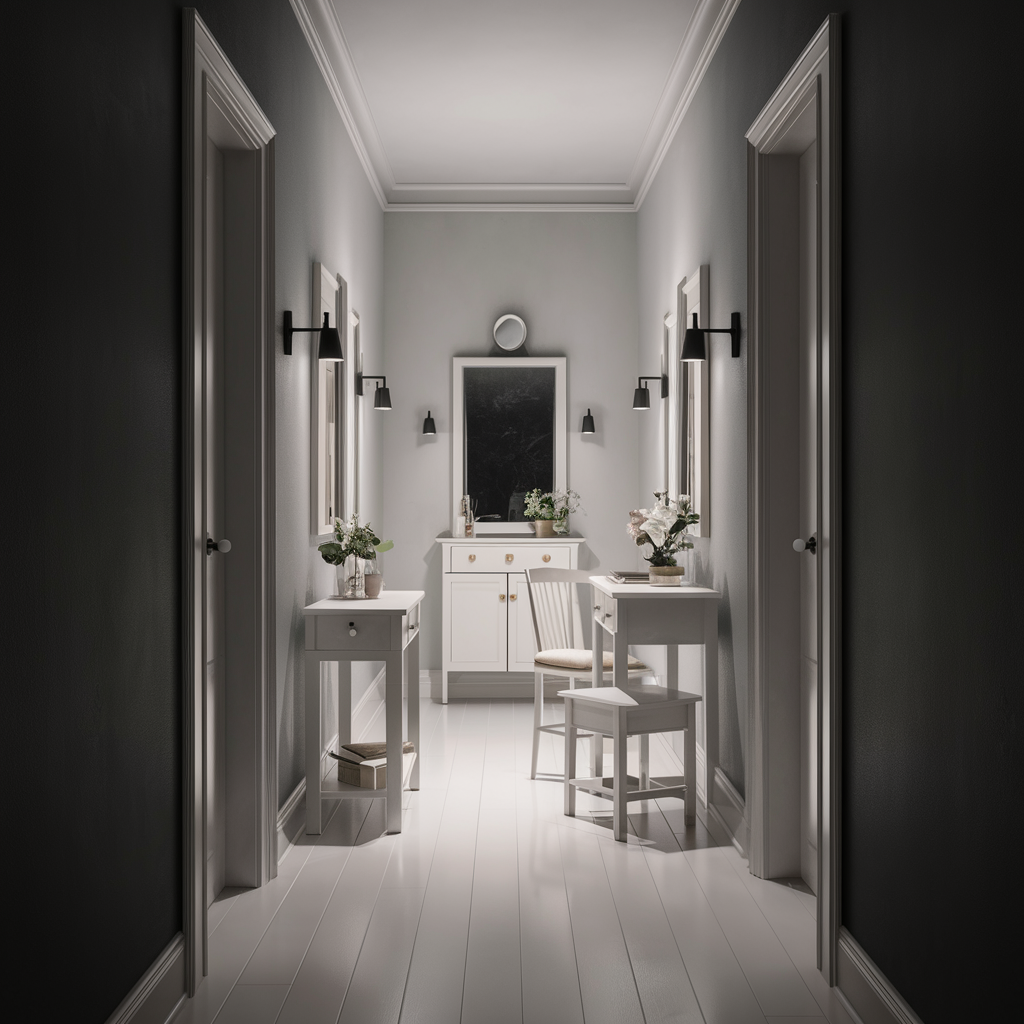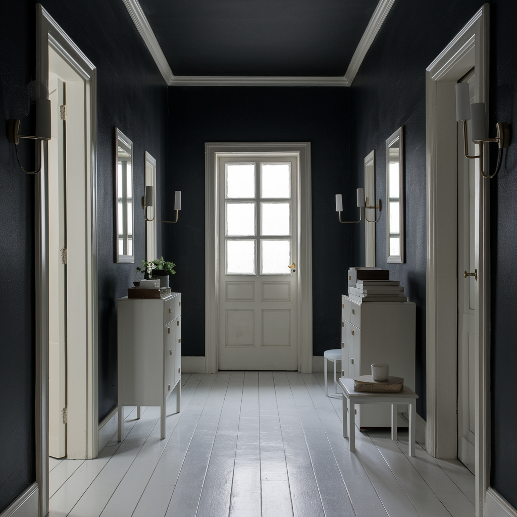 The right choice of paint colors multitasks from restoring a monotonous and gloomy to a bright and engaging space. Light, neutral colors such as whites, light grays, and soft pastels are excellent choices to reflect light and make the space feel larger and more inviting. For example, right wall colors like light to brighten up the hallway and also it is recommended to use the two-pane finish of gloss substrate for the walls or semi-gloss to be more enhanced and reflective.