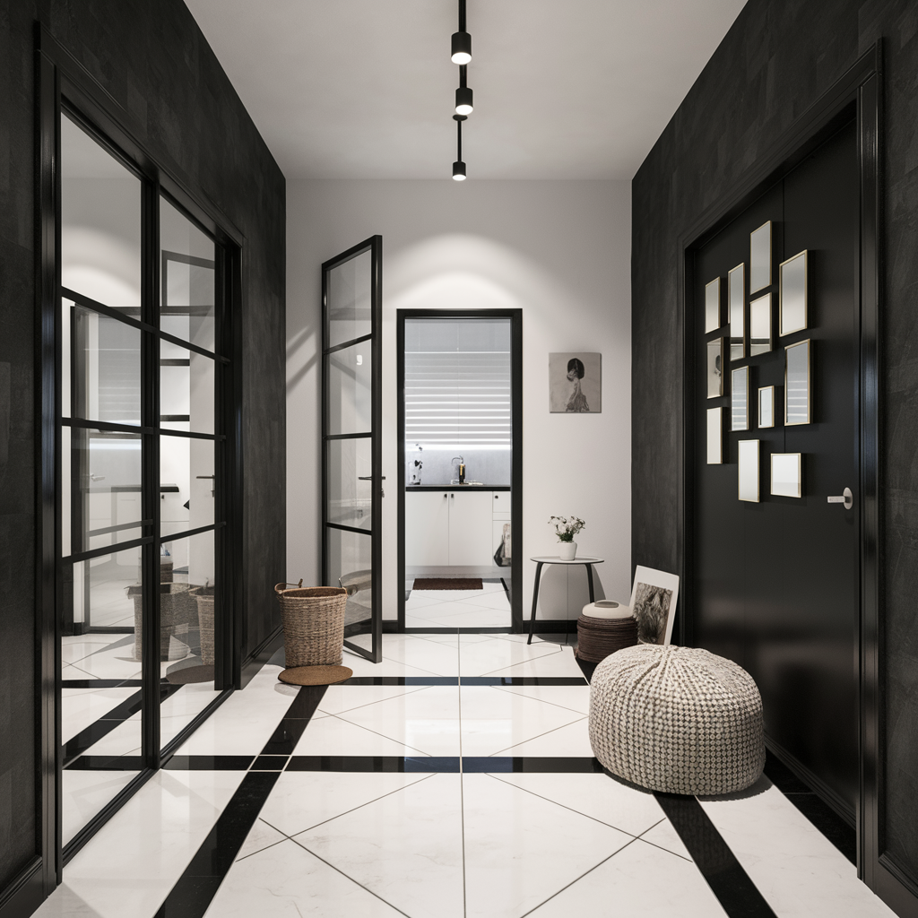 The correct choice of materials is a significant factor to brighten dim and dark hallways. White-colored tiles or wood for the floor, are there to shine light on reflective surfaces, and a natural fabric curtain can all contribute to a brighter sound and a clear look.