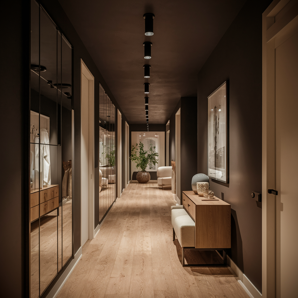 Stylish ways to decorate a dark hallway are the selection of smooth modern furniture, the introduction of chic storage solutions and the use of approved decor elements. Keep in mind a unified appearance that is a proper mix of function and style, while also guaranteeing the hallway does not lose its light and cozy feel.
