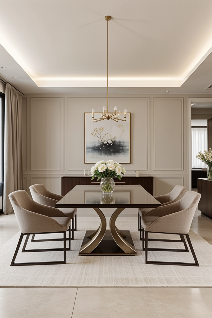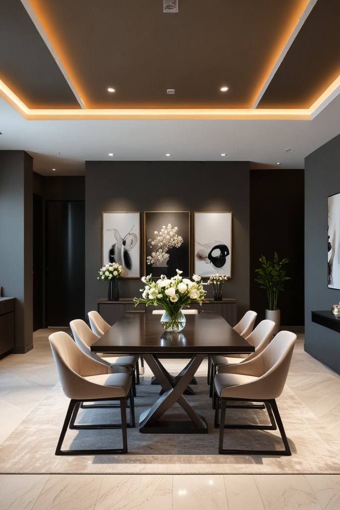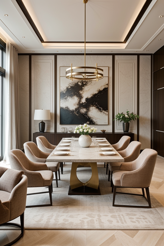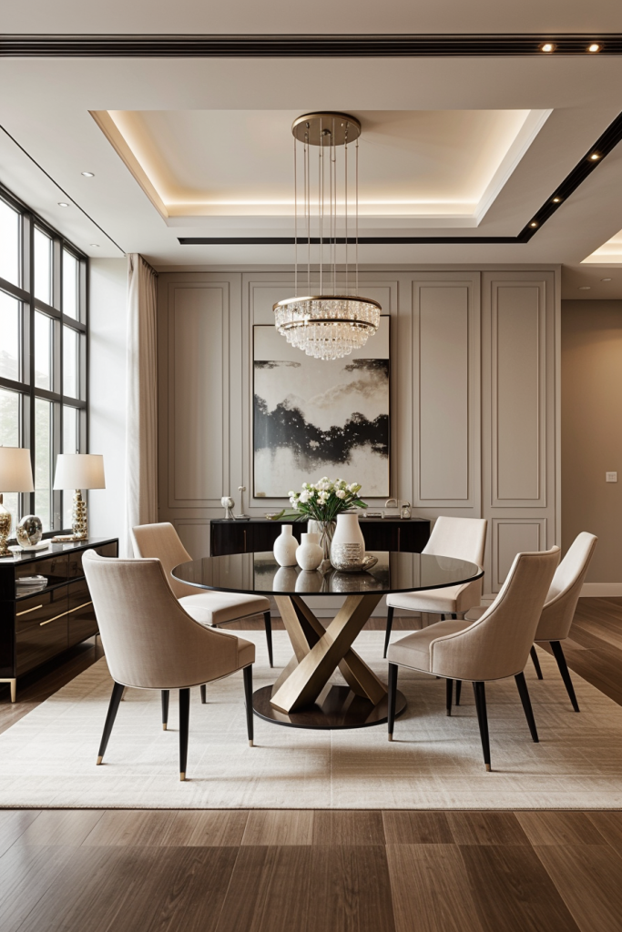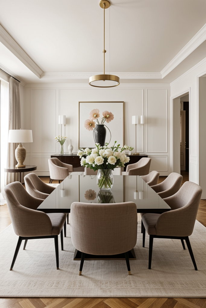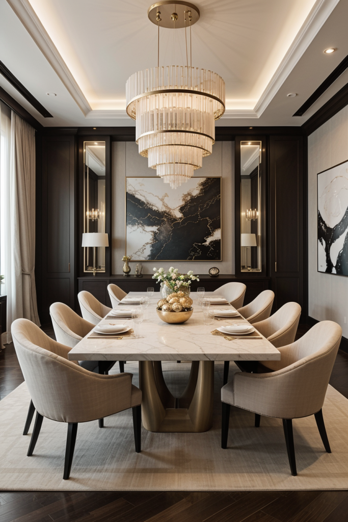 Transform your space with luxurious modern dining room decoration ideas that combine lavish materials and elegant designs. This style represents luxury furnishings, custom made decorations, and refined modern minimalistic details. From designer table settings to decorative pieces, the curated touches encapsulates an atmosphere of refined sophistication.