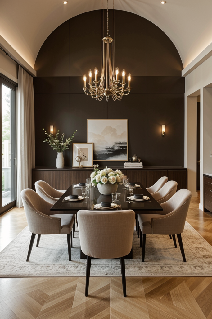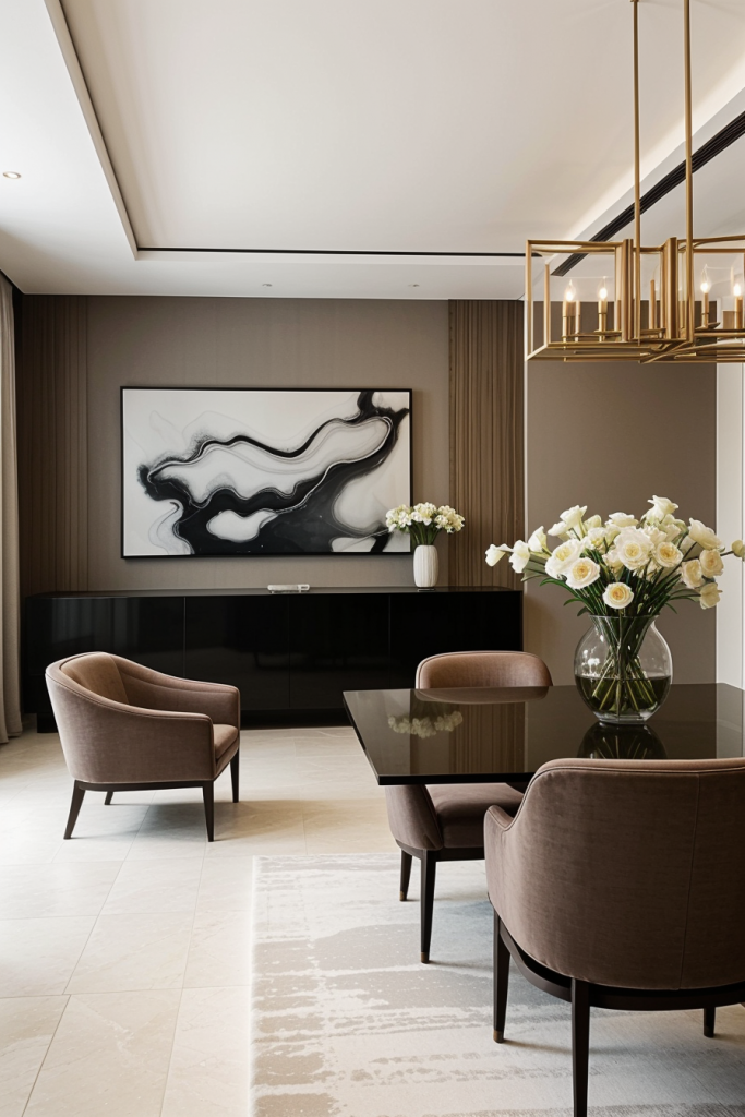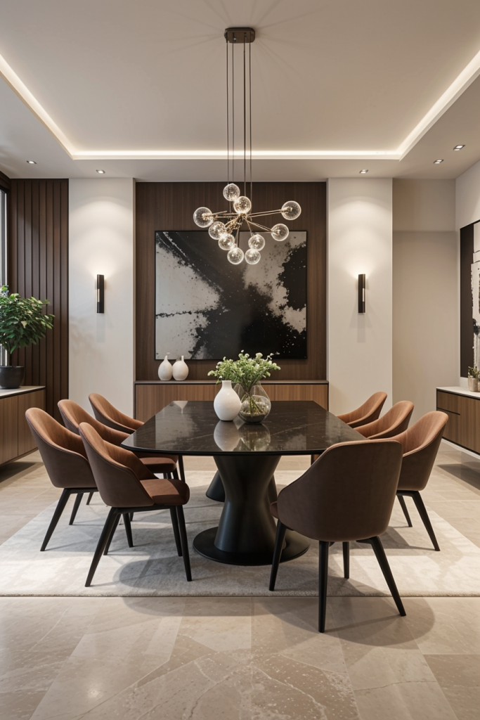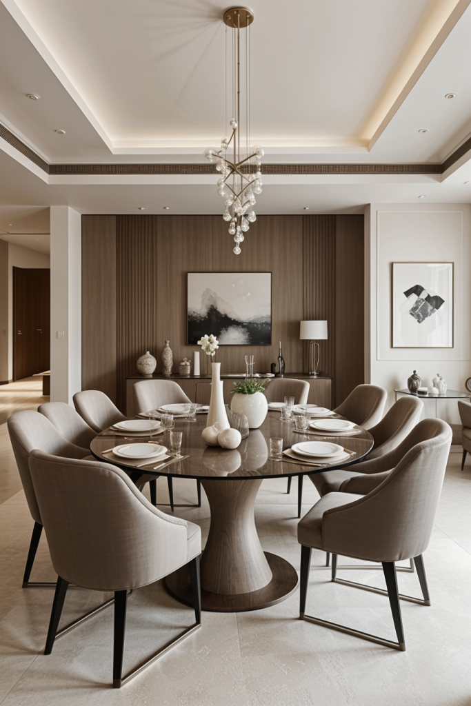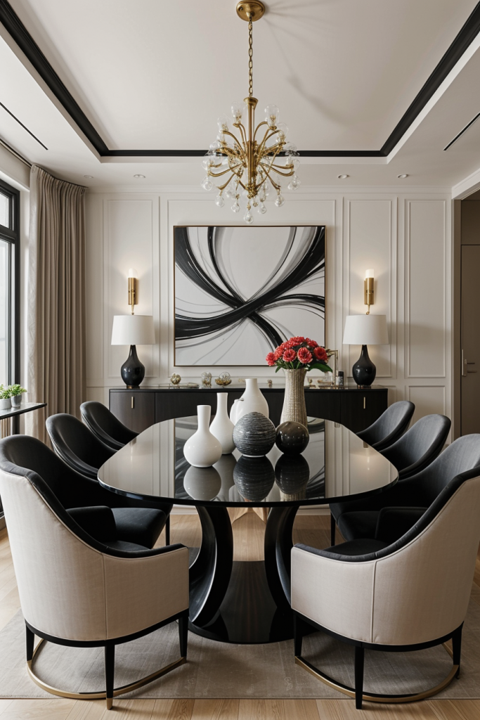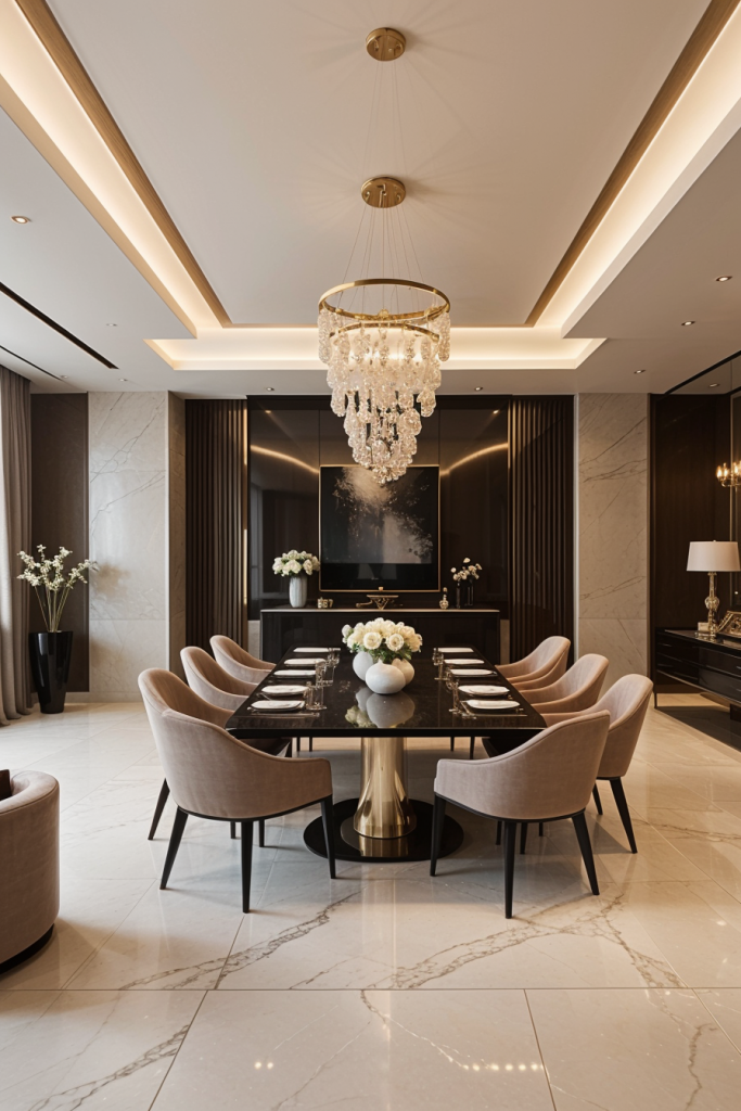 Transform your space with luxurious modern dining room decoration ideas that combine lavish materials and elegant designs. This style represents luxury furnishings, custom made decorations, and refined modern minimalistic details. From designer table settings to decorative pieces, the curated touches encapsulates an atmosphere of refined sophistication.