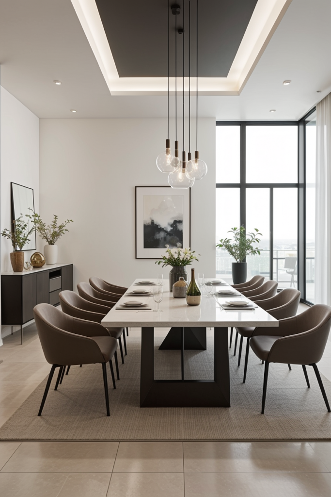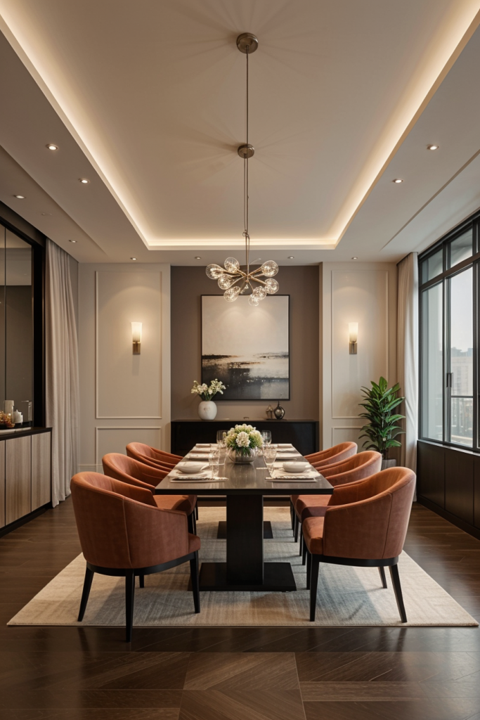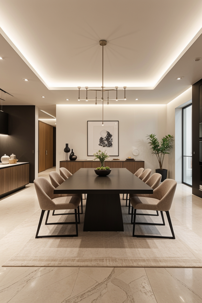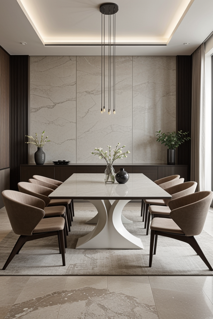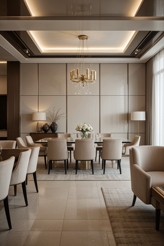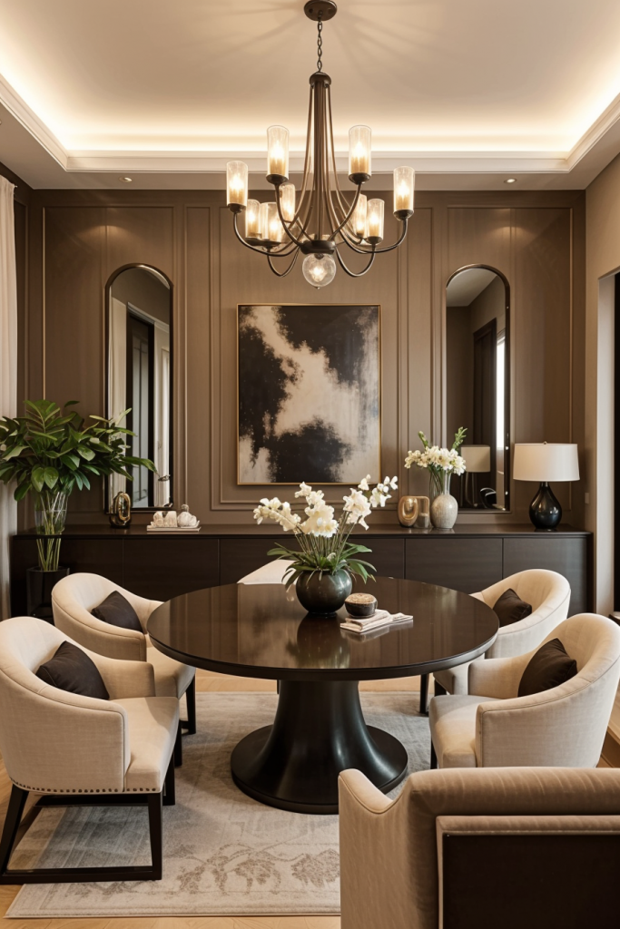 Transform your space with luxurious modern dining room decoration ideas that combine lavish materials and elegant designs. This style represents luxury furnishings, custom made decorations, and refined modern minimalistic details. From designer table settings to decorative pieces, the curated touches encapsulates an atmosphere of refined sophistication.
