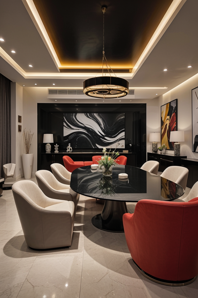 Create a focal point that captures your attention with unique dining room design statements that can be At the heart of this approach is bold and generous use of powerful architectural features, signature furniture pieces, and artistic decor elements which are sure to draw the eye and send a beautiful luxurious creative notion. This design is made to have conversations sparked around it while having a distinctly character that enhances the overall dining experience.