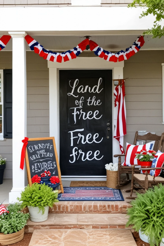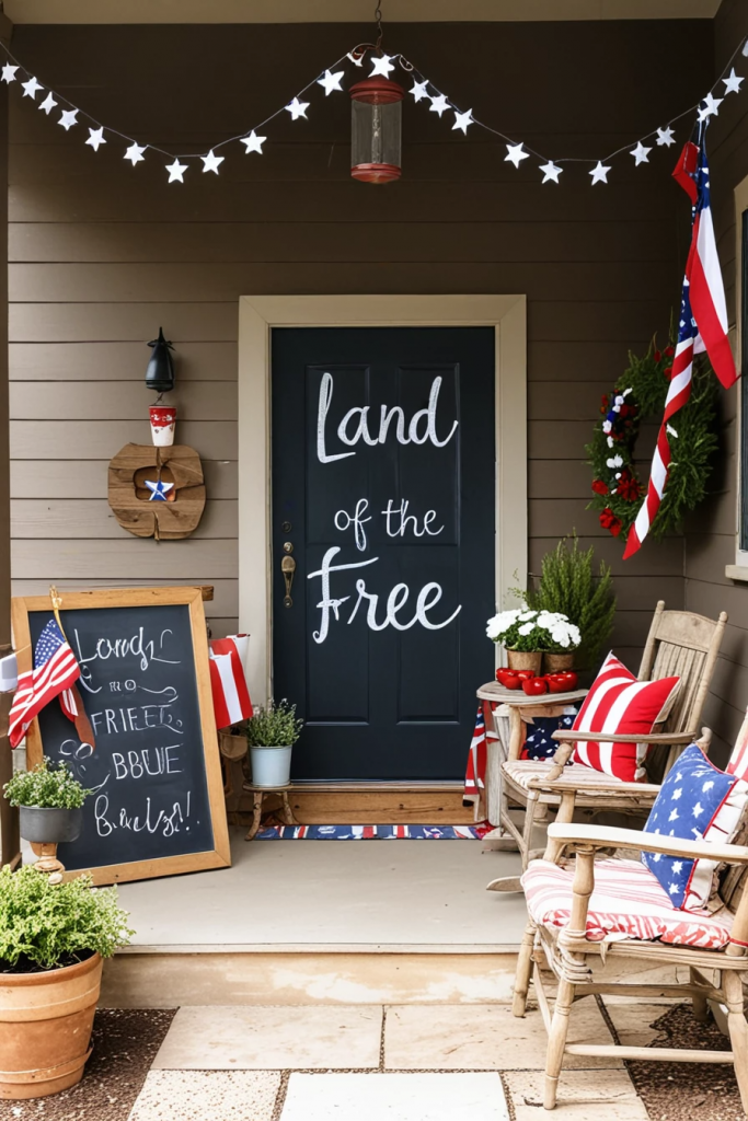 Every porch can be more welcoming with the addition of custom-made chalkboards and wooden signs. Features quotes like “Land of the Free” or “Welcome to Our Patriotic Porch” will certainly catch anyone’s eye. Custom signs look best vertically beside the door or horizontally along the railing. For maximum durability, choose copper or wood that can withstand outdoor weather conditions. For best results, combine traditional quotes with fairy lights or small flags that dance in the air for ideal visual splendor.