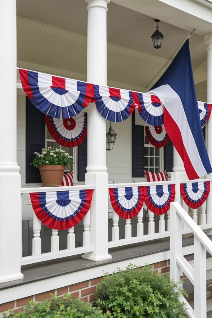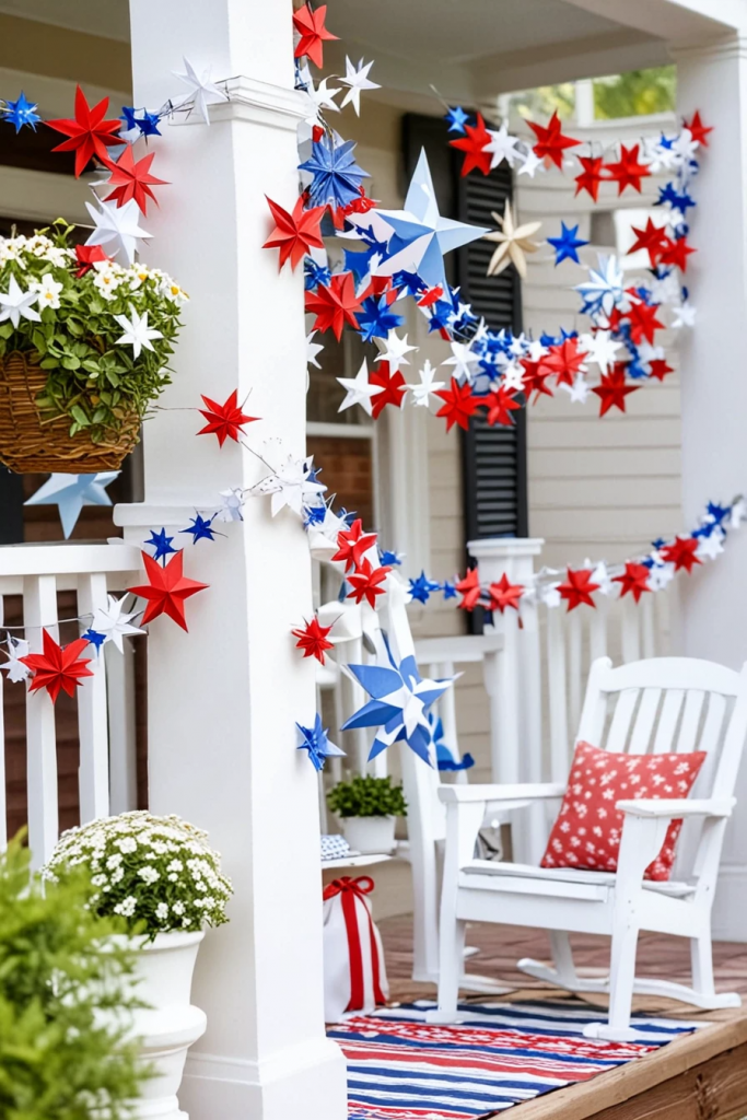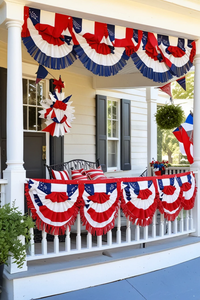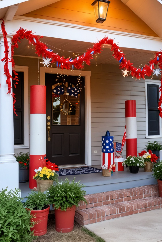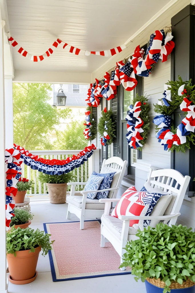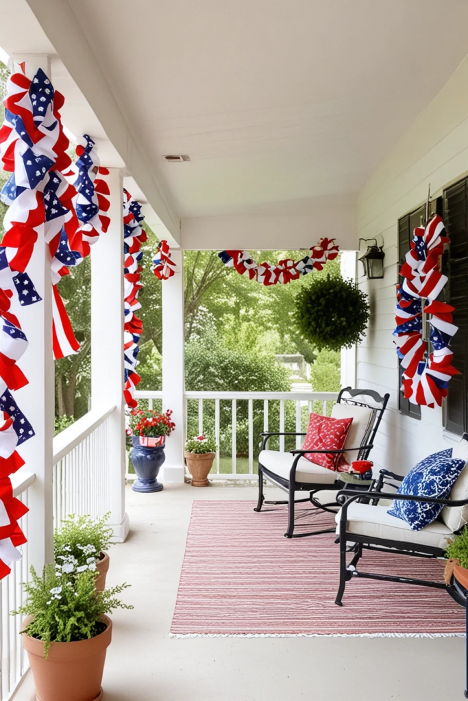 Using Fabric Garlands for a Patriotic Porch Backdrop