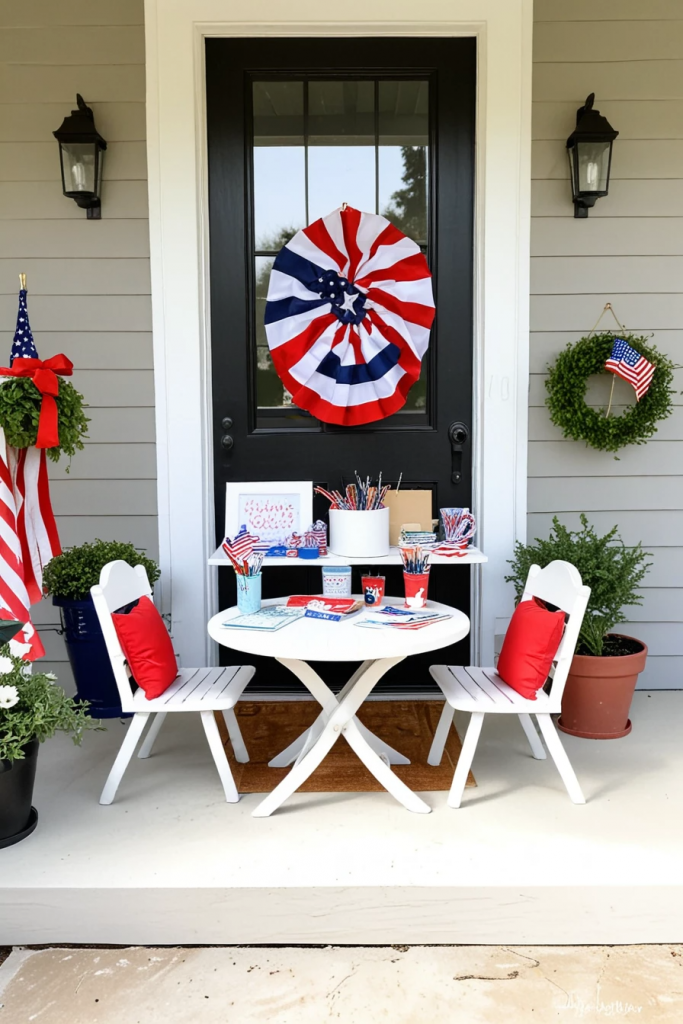 Reserve a small section of the porch for children’s crafts. Purchase a small table, coloring books, washable markers, and 4th of July themed projects like flag coloring or paper lanterns. Complete the set with small chairs and patriotic cushions for the seats and a bin full of all the supplies you’ll need. The children will remain entertained while the adults celebrate!