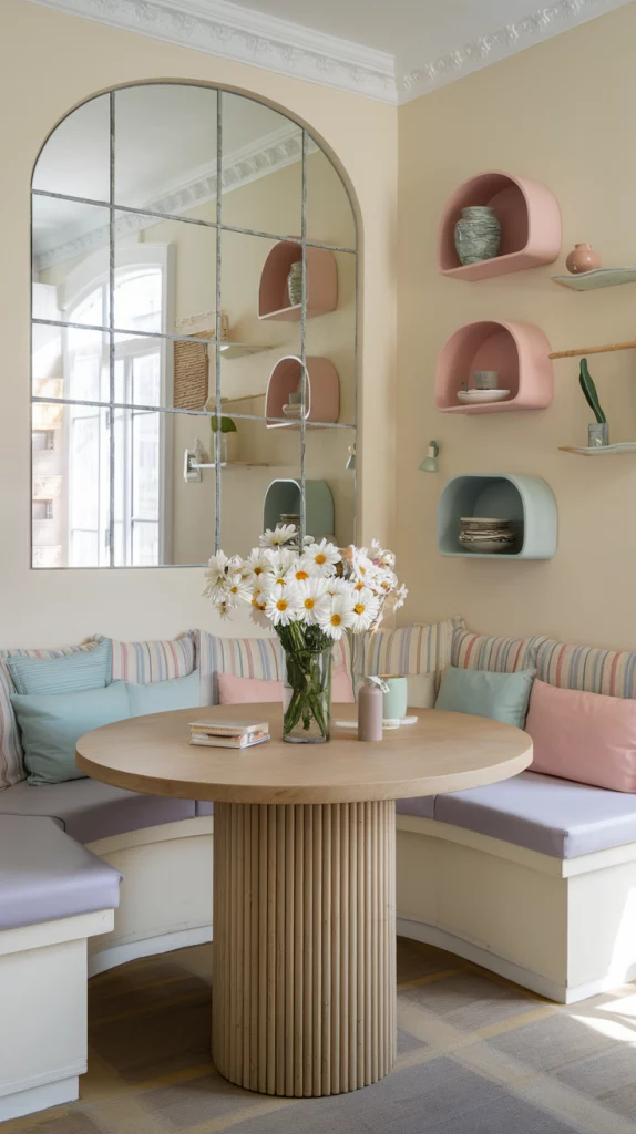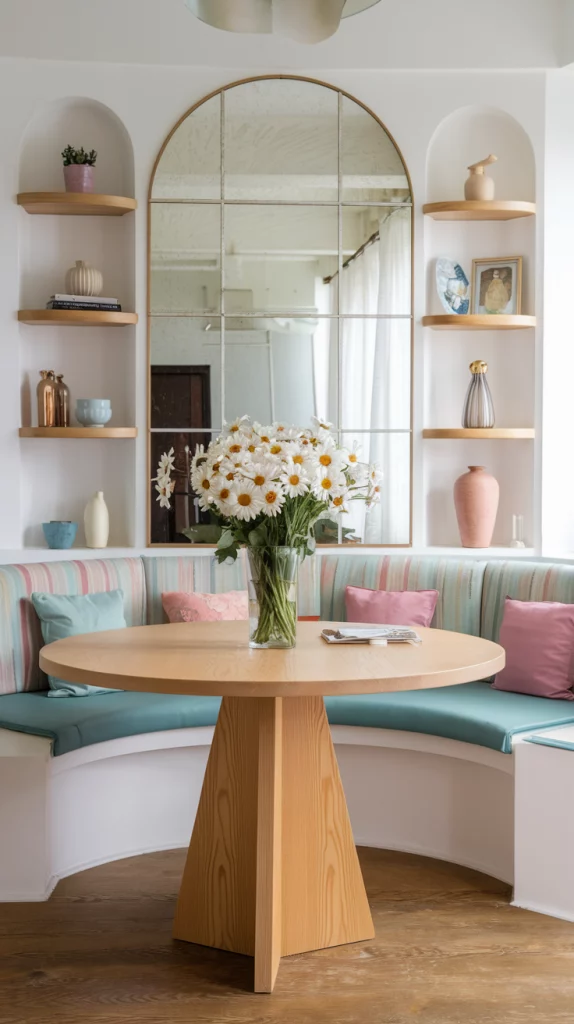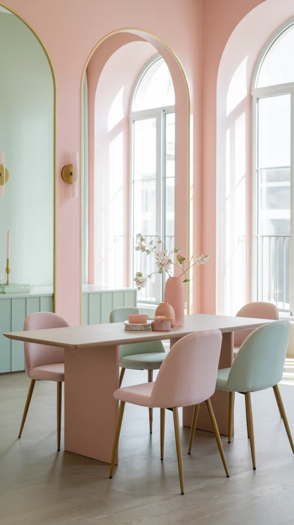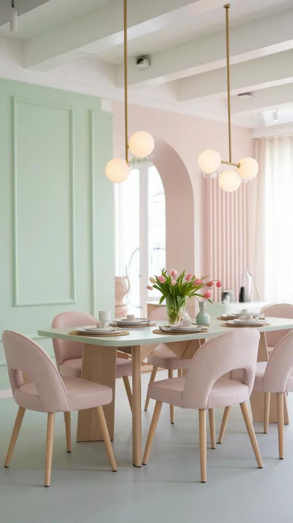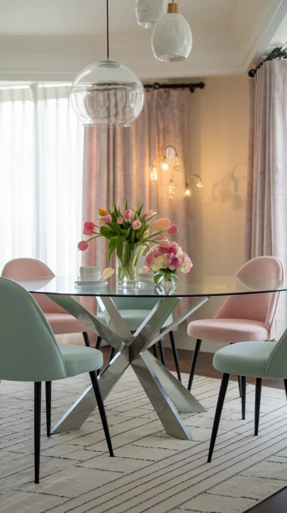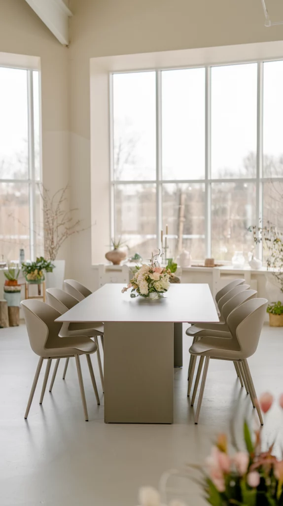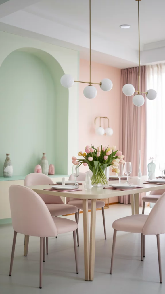 Pastels are a staple for spring decor, but when paired with neutrals, they create a more balanced and sophisticated look. A pale pink dining table with beige upholstered chairs, or a mint green accent wall paired with natural wood tones, keeps the space fresh yet timeless. This combination ensures that the room remains inviting and easy to update throughout the seasons. Incorporating subtle metallic accents or textured fabrics can also enhance the depth of the design.