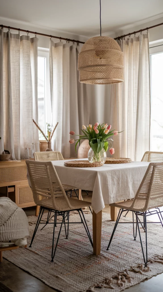 Mixing Textures: Linen, Cotton, and Rattan Elements