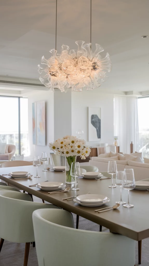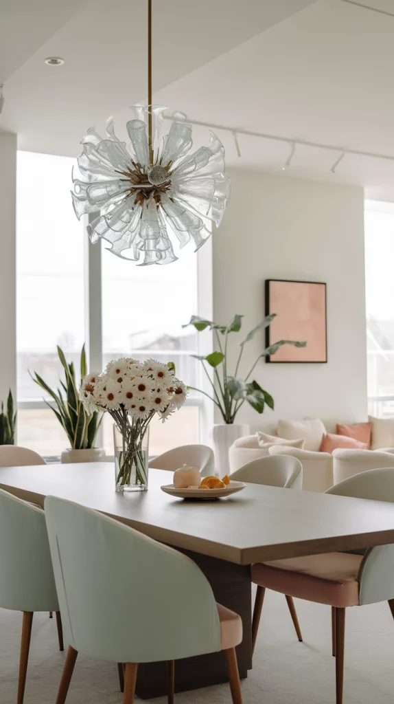 A statement chandelier instantly enhances the aesthetic appeal of a dining room. For Spring 2025, expect to see woven pendant lights, sculptural glass fixtures, and nature-inspired chandeliers. Organic materials like rattan, linen, or frosted glass add a soft elegance, while LED fixtures with floral or branch-like designs introduce a contemporary edge. A well-chosen chandelier serves as both a focal point and a mood-setter in your dining space.