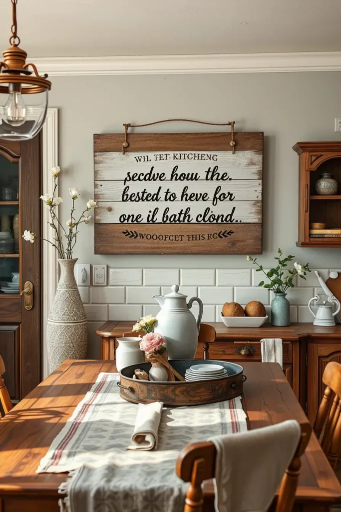 These pallet and wooden accessories are usually sanded clean, painted in neutral or aged finishes such as chalk white, weathered oak or soft gray-blue. After that, I use stenciling or handily paint words in cursive or serif fonts. I have them hanging above buffets and on coat hooks or I display them in a gallery. I even out the look of the wood by including ceramic vases, galvanized metal trays and linen-lined baskets nearby.