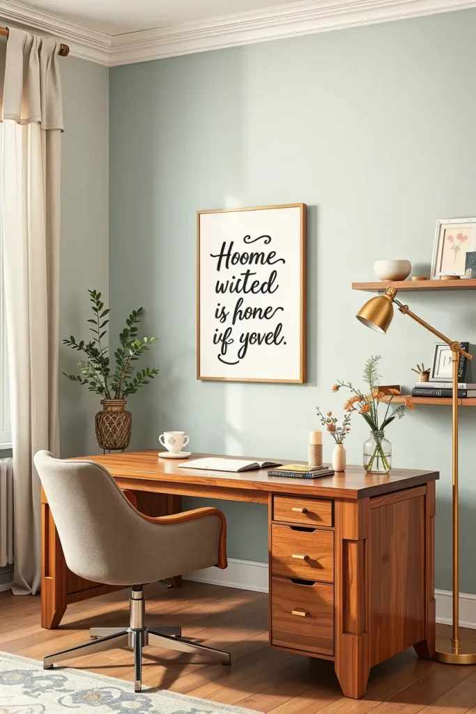 I decided to hand-letter “Make It Happen” on a big canvas with black acrylic and a fine brush. It hangs above a wooden desk and soft leather chair and people keep mentioning how much they like it to this day. Experts in interior design such as Emily Henderson, think bold typography and even spacing add rhythm to the visual layout.