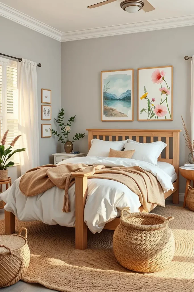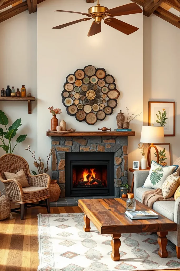 Adding wall decor with wood and stones from outdoor nature makes any room feel more natural and comfy. I often apply this look in modern rustic or Scandinavian interiors, especially when the area needs to feel calm and peaceful like a bedroom or reading nook. The use of these materials gives the place a touch and look that never goes out of style.