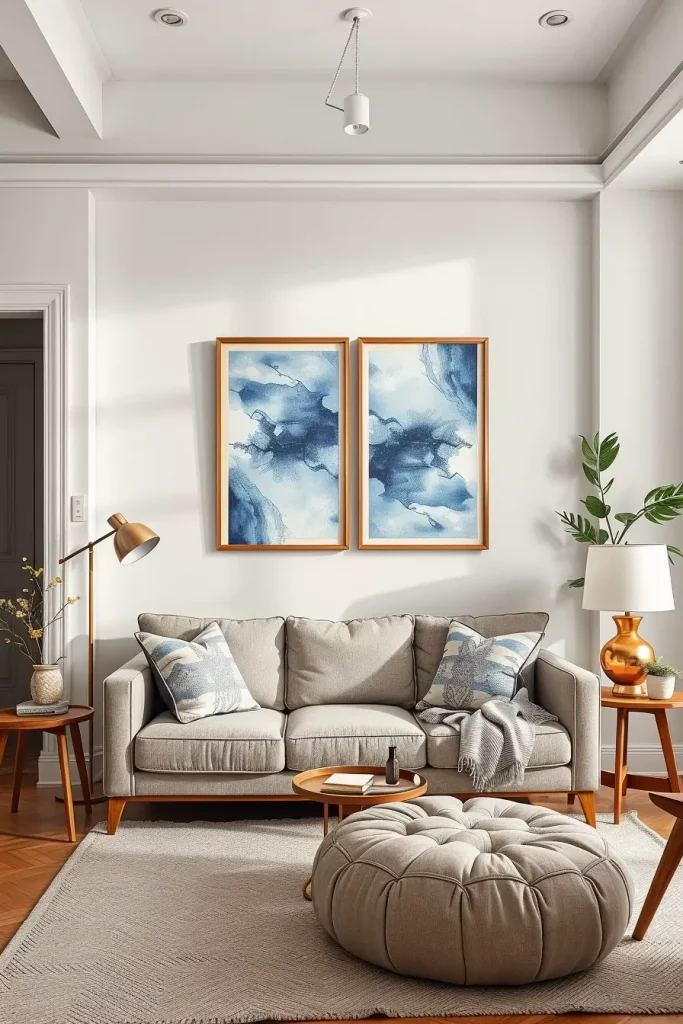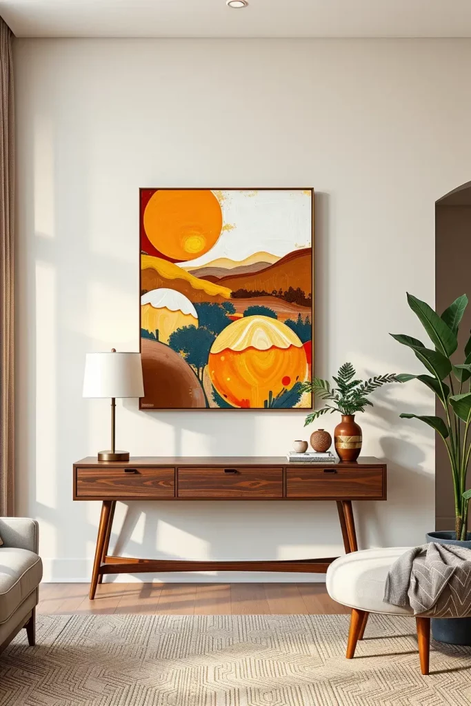 I usually begin by using pre-stretched boards and acrylic colors in shades reminiscent of the room’s key tones, for example, blush pink, navy blue or a warm ochre. Framing the image with a floating design looks professional. Often in the space, I match these artworks with a clean, mid-century modern table, a ceramic lamp and a tall plant for symmetry. They blend to give any space in your home the look of a gallery.