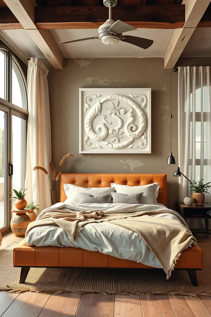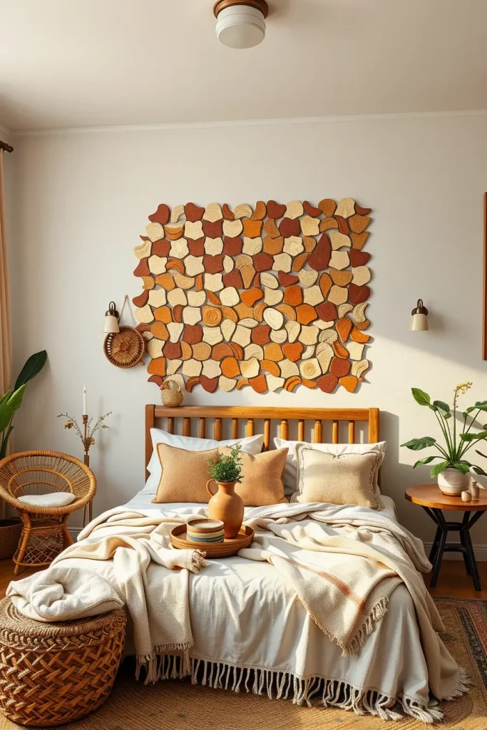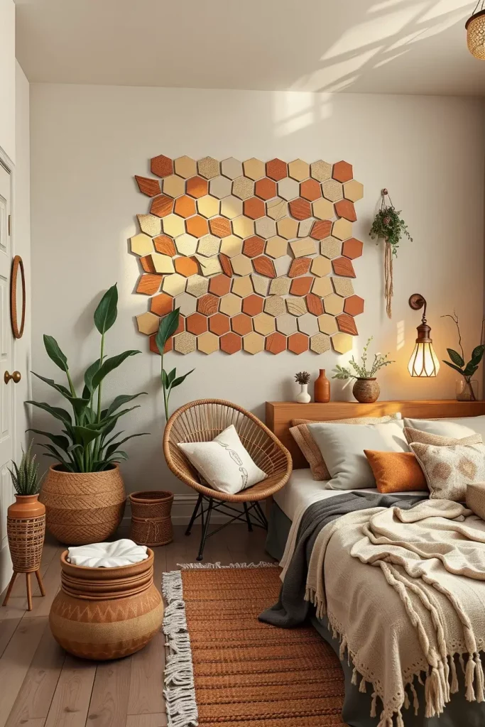 Anyone who likes their home to feel dimensional can try using plaster and paste to make 3D wall decor. I find textured tile is especially useful in boho or modern homes to add softness to surfaces that might otherwise be plain. Placing it above a simple neutral-colored couch or bedframe and on muted earth-colored walls, looks especially good.