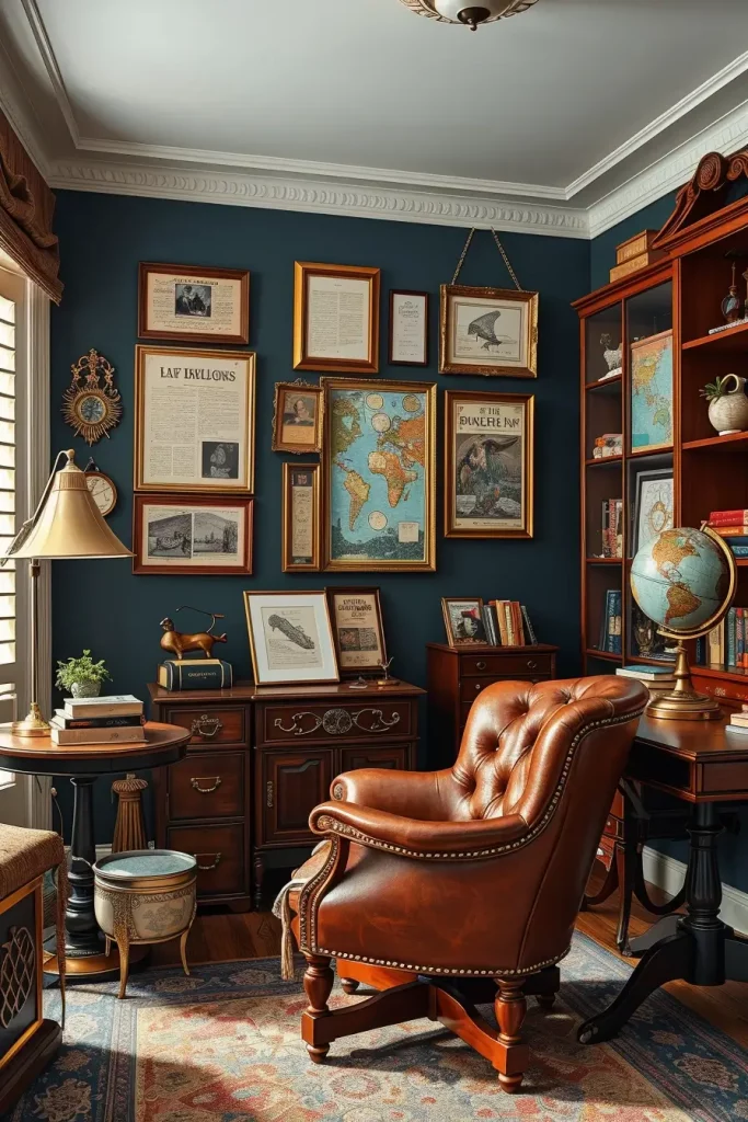I often place the paper art on top of neutral canvas or we set it in symmetrical frames. Put a leather reading chair, a brass reading lamp and either a globe or magnifying glass on a near desk. They bring all the different pieces of the story into one theme and make the game feel more exciting and smart.
