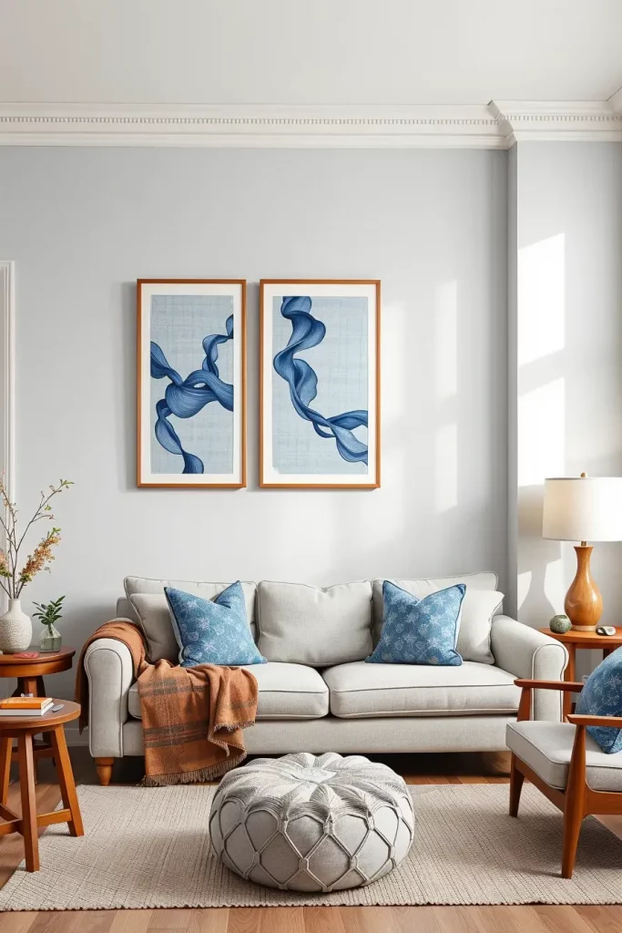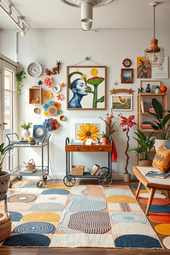 You can make this work by using artworks with interchanging, pegged or magnetic frames. To make sure, your furniture should be flexible too; go for modular settees, neutral ottomans and things like ceramic jars or rugs in warm tones. You can use wall-mounted cubbies to make it easy to put out similar materials.