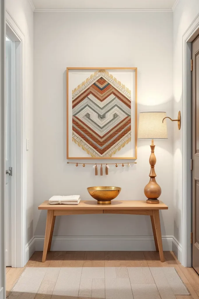 You can make woven paper art yourself and it remains modern-looking despite the low budget. I have put this tactic in entryways or near any wall that has a small niche so that the layered patterns catch the eye. You could make thin strips from colored paper or cardstock, weave them and then put them in a frame to hold the design.