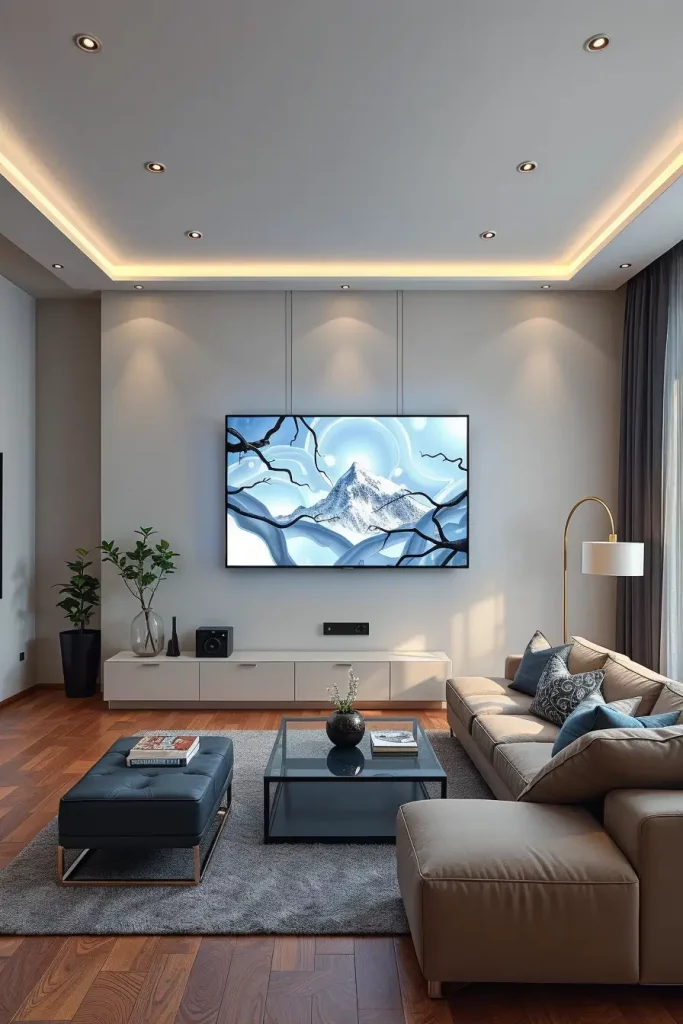 For me, the best décor to go with these light-up canvases is low-profile sofas, little tables made of glass and integrated TV cabinets. Blackout curtains or textured acoustic wall panels help highlight the LED features while contributing to the room’s acoustics and visual cohesion.