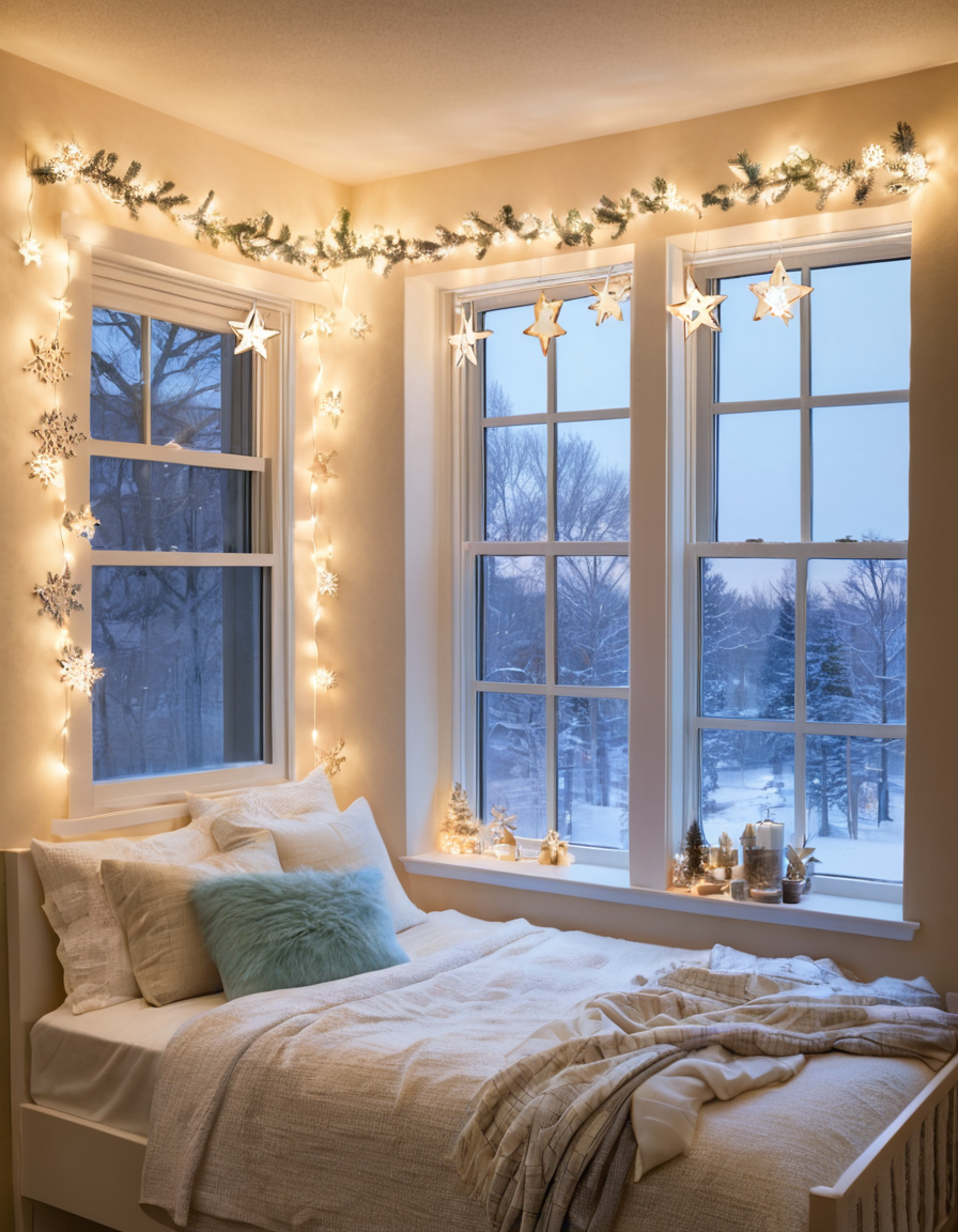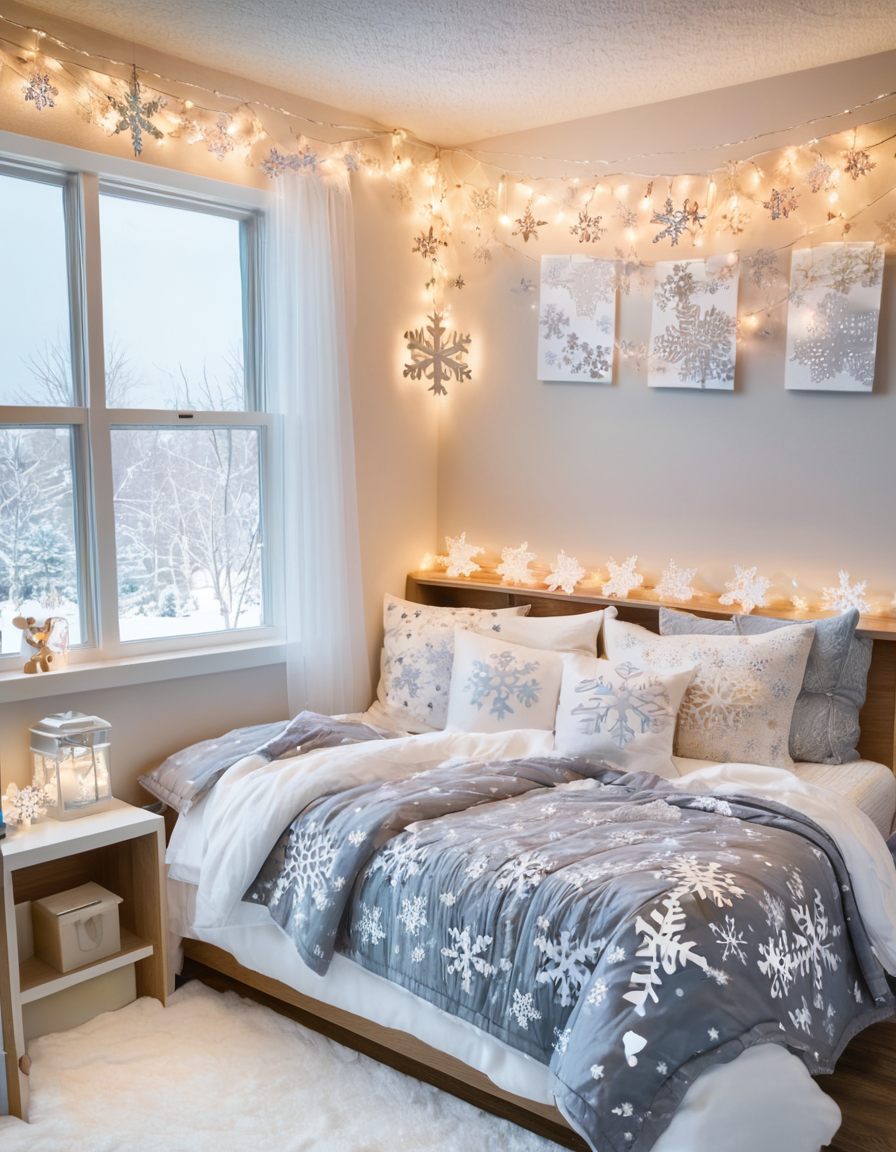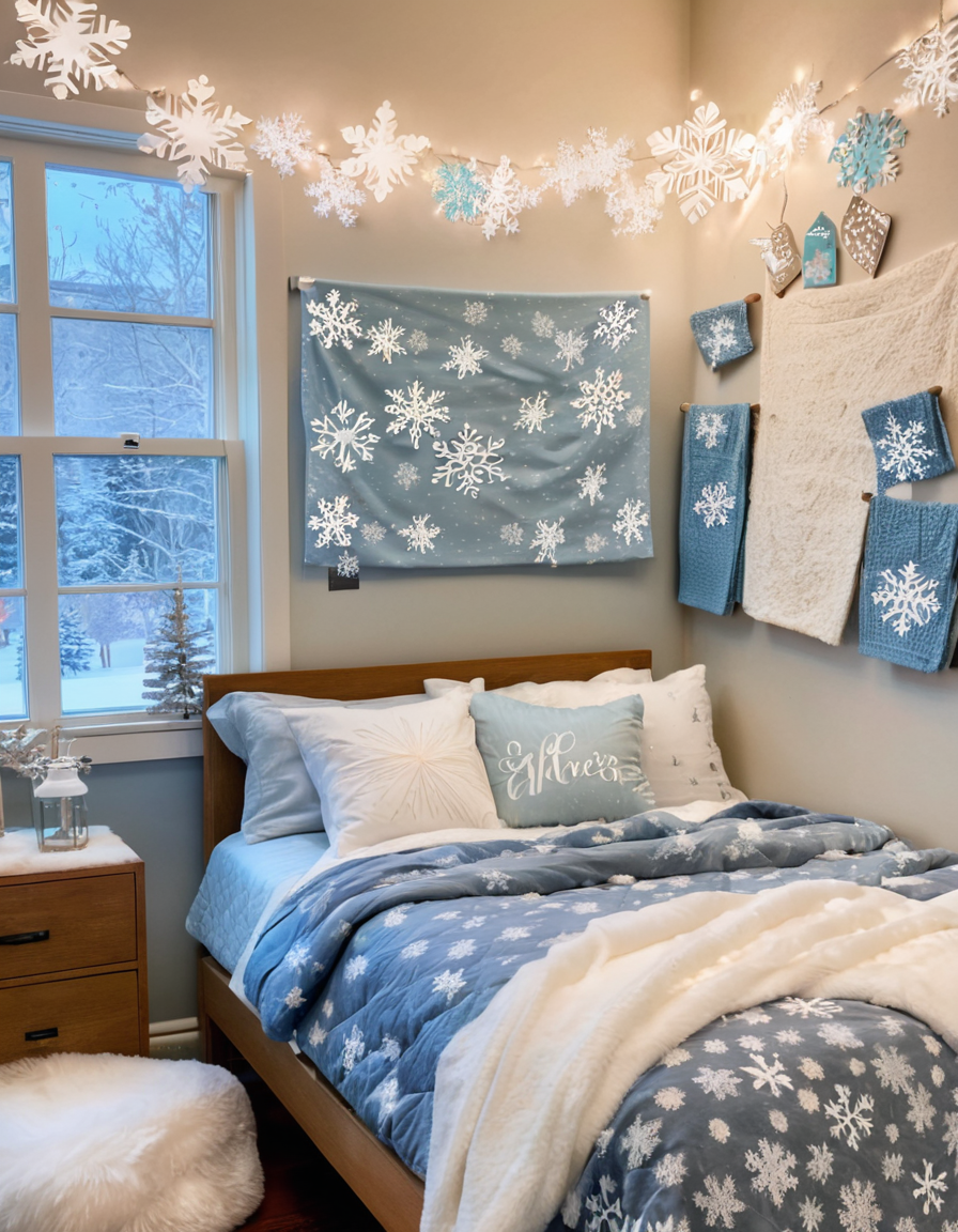 Snowflake-Themed Decorations for a Wintery Dorm Room Look