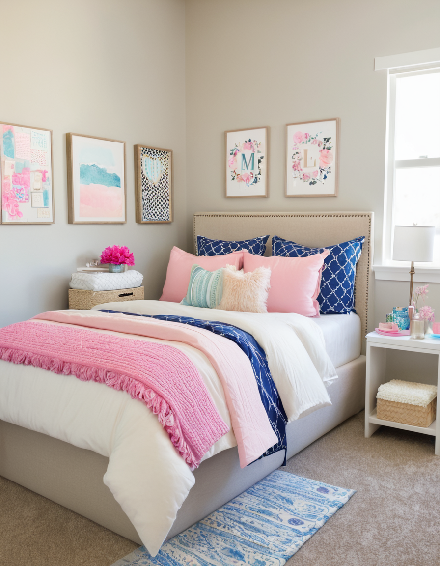 Layering of fortifying textiles, such as throw blankets, cushions, and rugs, will give off the positive atmospheric energy needed to make a home feeling. Pick an assortment of textures—think of feather-soft pillows, weave-thin blankets, and opulent rugs—in order to make a fuller and more comfortable piece. This modus operandi seems to be especially a charter for boho and preppy-themeded rooms. The difference might be in putting brightly accentous pink and a group of low spiking colors Shakespeareana-wise to the dominant grayness that fills the room whenever this dorm Titz is in the room.