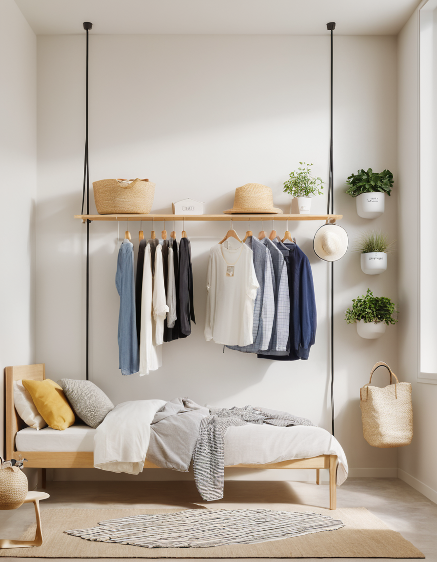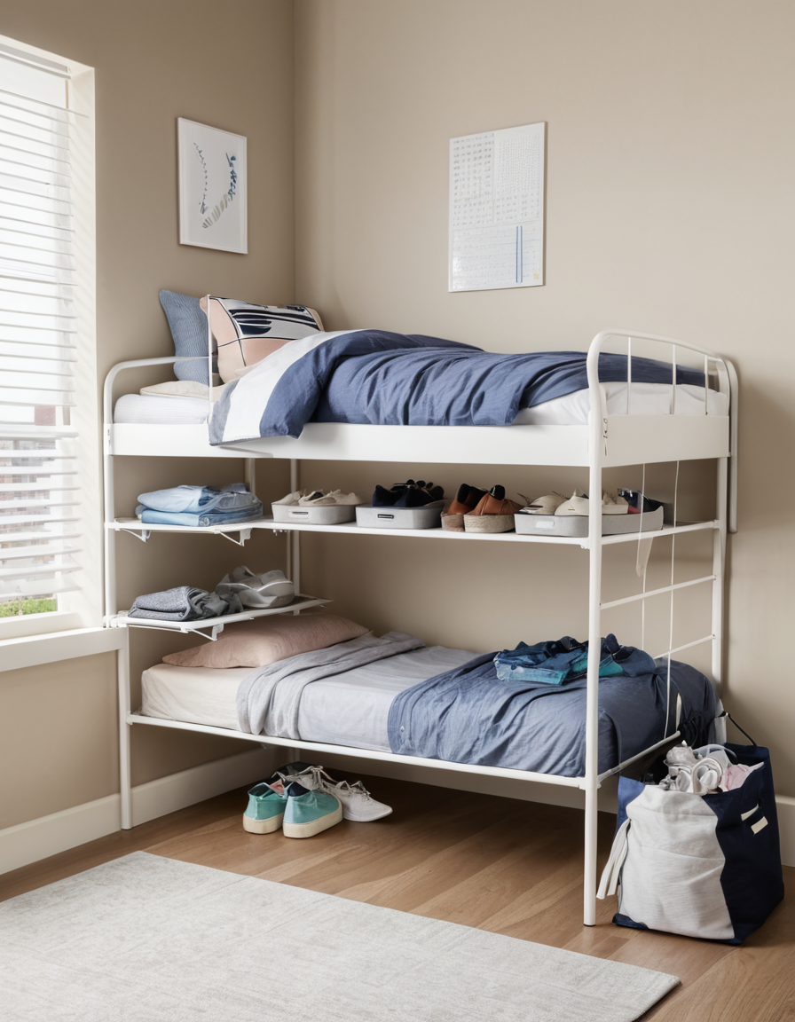Do more with the little spare space left on the floor by fixing additional storage in the vertical spaces available. One way of making enough room in your cupboard or on your shelves is the use of hanging racks to COn operating like hold clothes, bags or accessories even in the absence of fixed racks in order to create such a situation. These hooks are simple to assemble on the main closet, or even on the wall using the little command hooks that are still available. This method allows you to keep your room neat while still maintaining a stylish and functional dorm room apart from having storage.