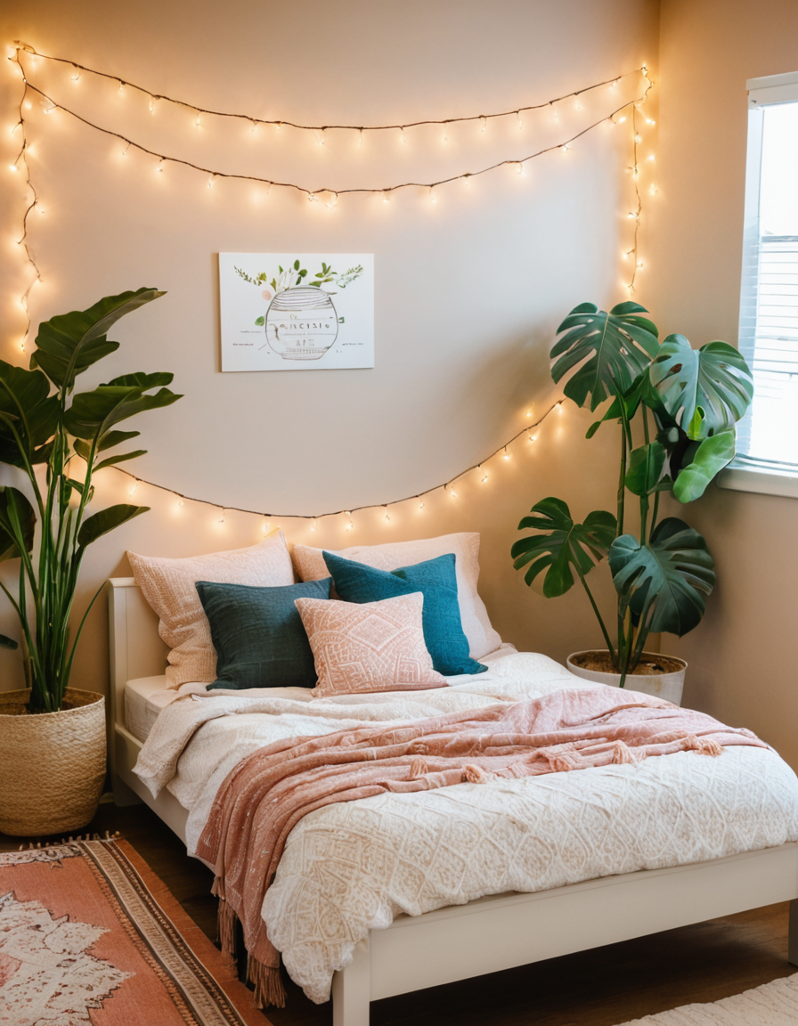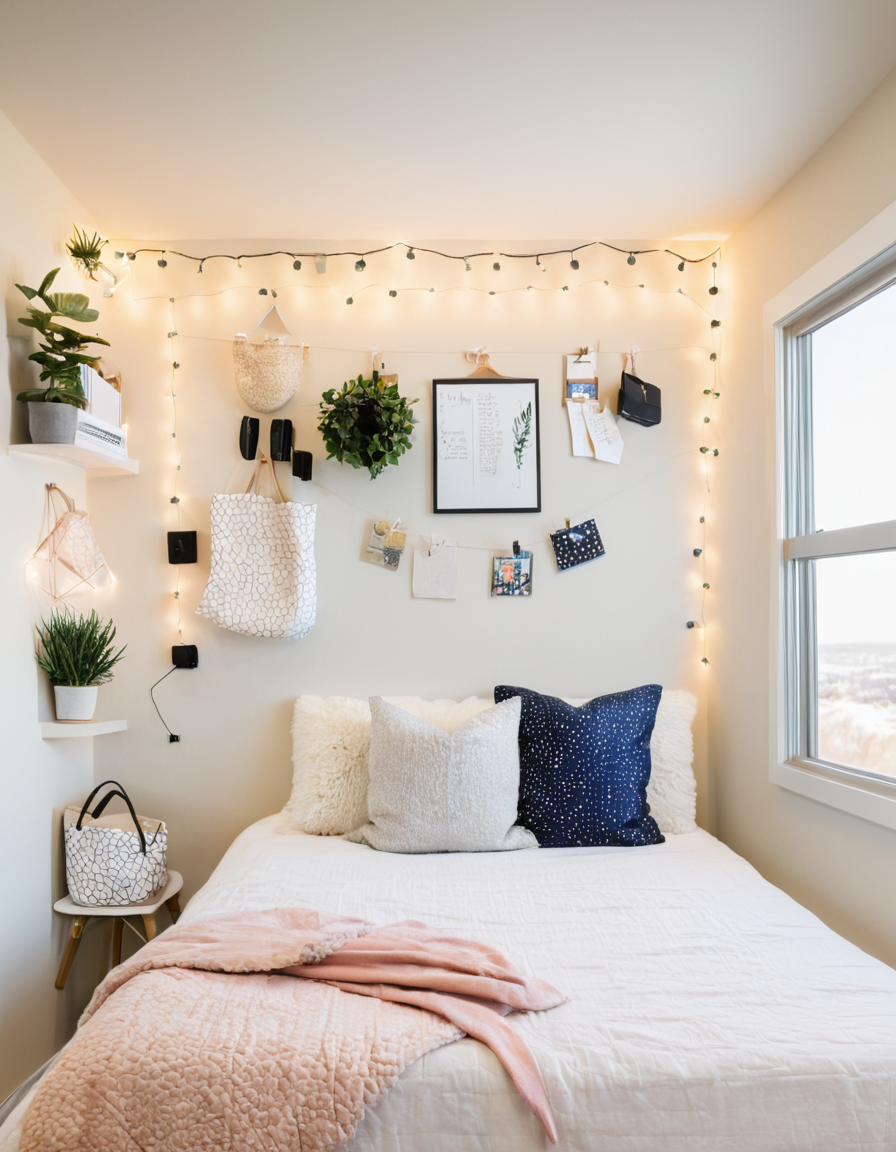 String lights are an easy way to add warmth and charm to your dorm room. Hang them around the perimeter of your room, above your bed, or near your desk to create a soft, inviting glow. Choose aesthetic lighting that complements your room’s theme, whether it’s boho chic or preppy. They’re an affordable decor option, available at almost any retailer.