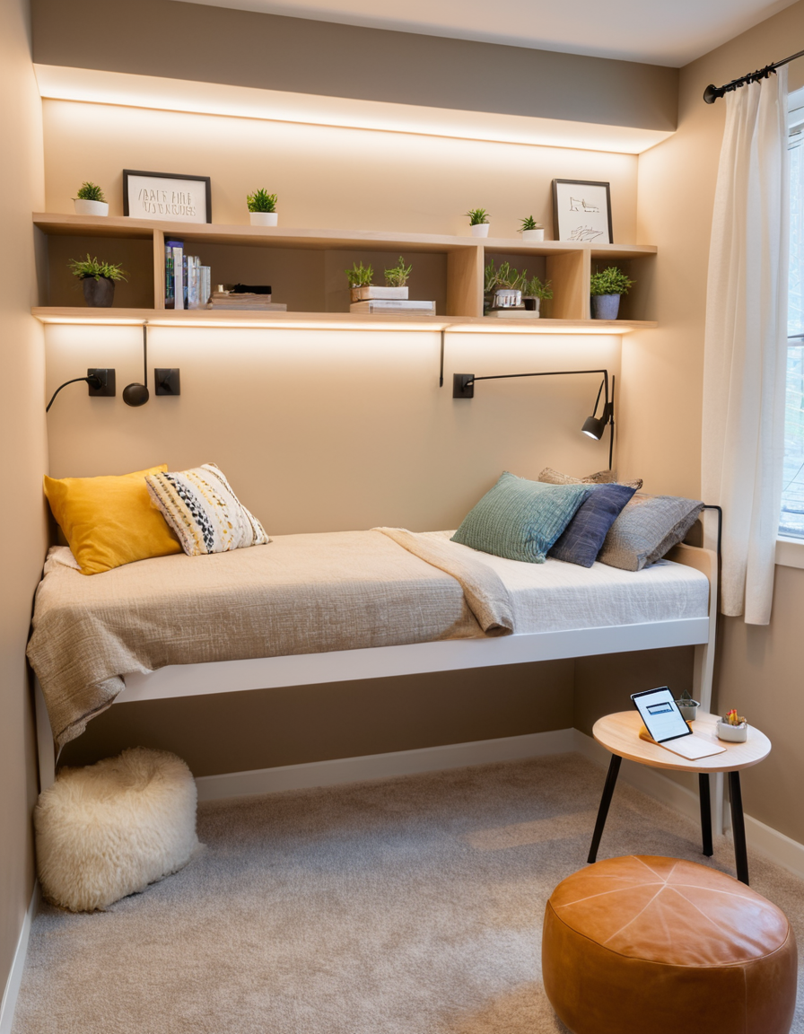 It can be quite problematic to entertain your friends in the dorm room if you have a limitation of space but the compact sitting options can make it much easier. Futons that can be folded up as well as poufs or small ottomans which can be stored away are good examples. For a more minimalist look, you can go for the seating which is also a storage that cams under your bed. These choices enable the comfort of your guests without causing congestion to your room, and they can be easily synchronized with your overall look.