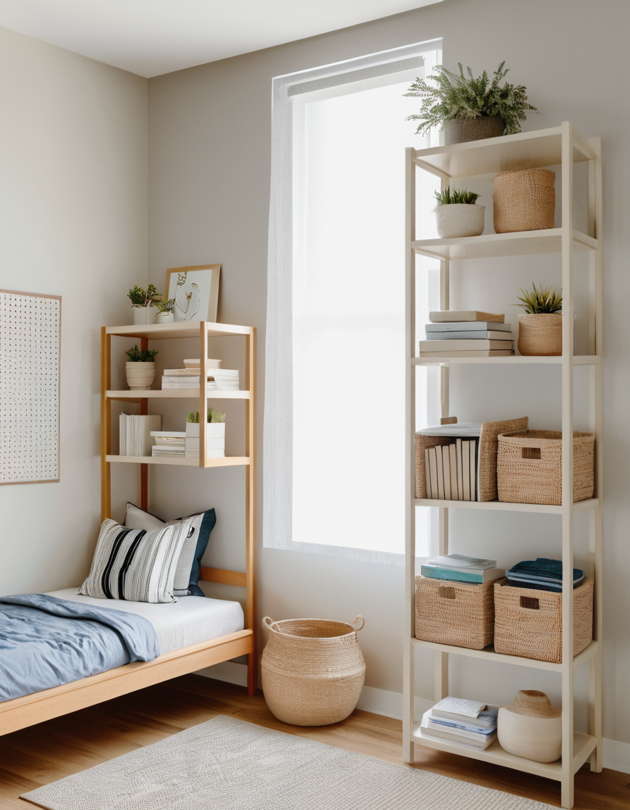 Storage is a necessity in a dorm room, and shelving units are a major life-saver. They are the preferred choice by students who like either tall, narrow shelves or the modular form that has become a fad; they have both the function of storing books and other necessary items and also the effect of making one’s room a good and helpful storage. Choosing shelving to envelop textbooks, decor, personal belongings, or rations is the first stealth Easy, ubiquitous, and fashionable—these are the three major concepts to remember when it comes to organizing and decorating your dorm.