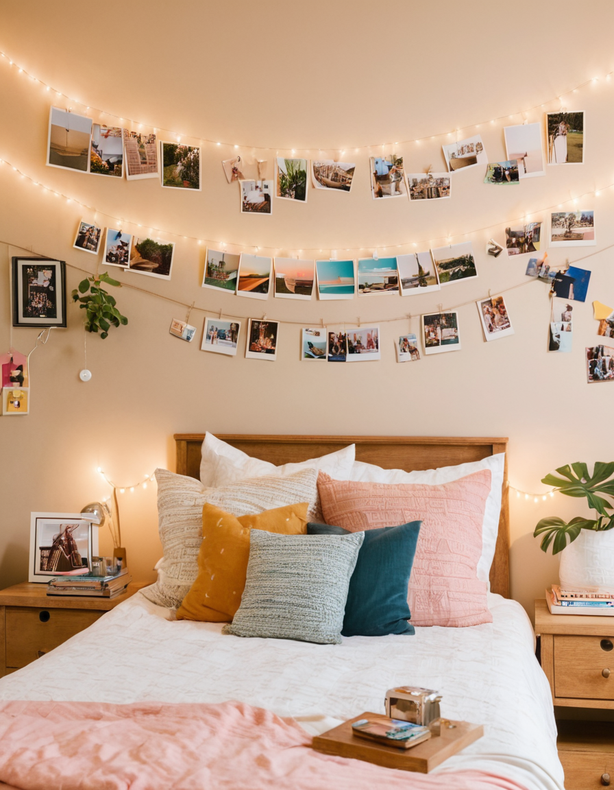 In a dorm room, there is nothing that can compete with photo collages when it comes to making it feel like home. Be it Allen, Ruth, Samantha or a candid moment that you treasure the most, the photo you have. This easy DIY decor idea that is to add your personal memories to the wall space is customization. To be more creative, you can use string lights, a grid panel, or corkboards to arrange your photos in order to make them more interesting and visually appealing. It’s a pocket-friendly idea to enhance the aesthetic of your room and at the same time, it stands out to be the only one of its kind in that aspect. You can get a collage with preppy or boho details for more style onto the room.
